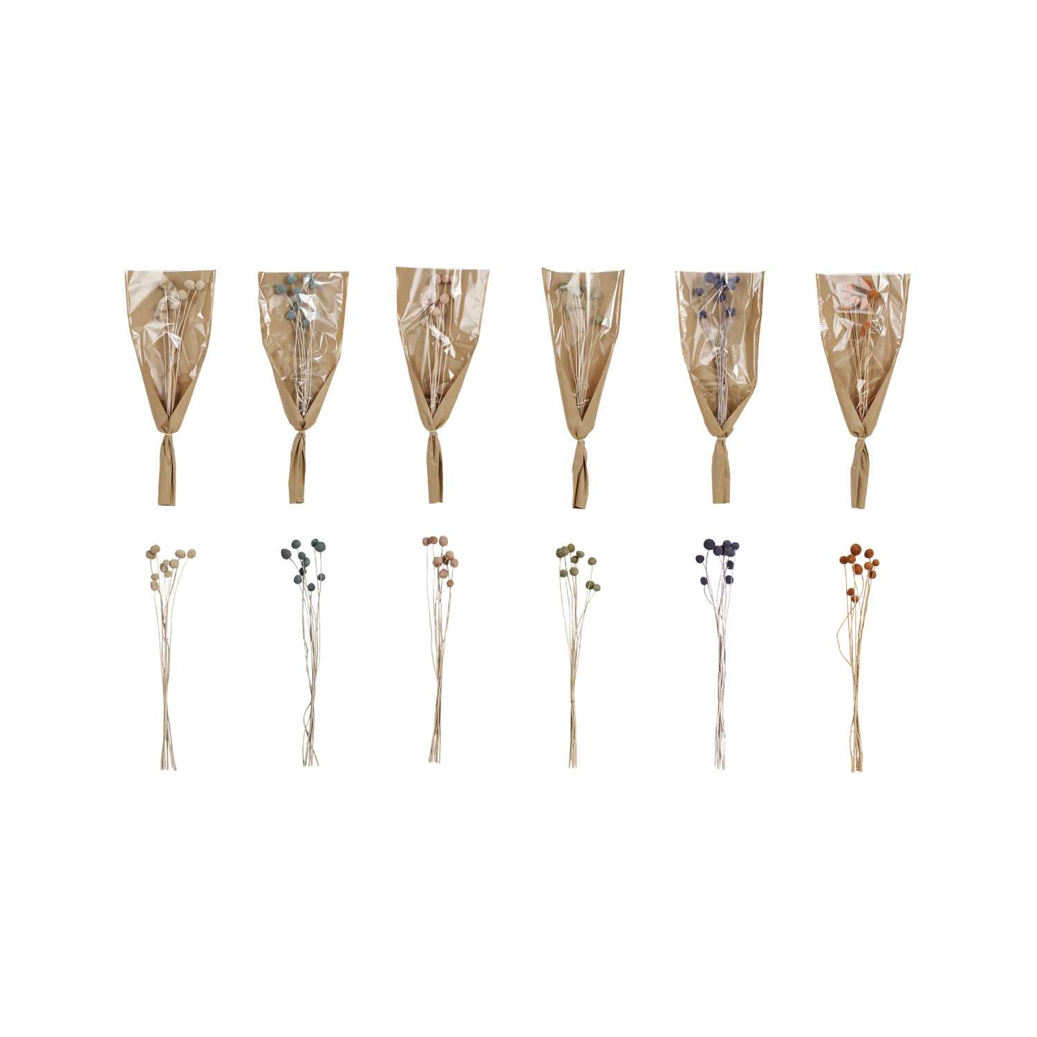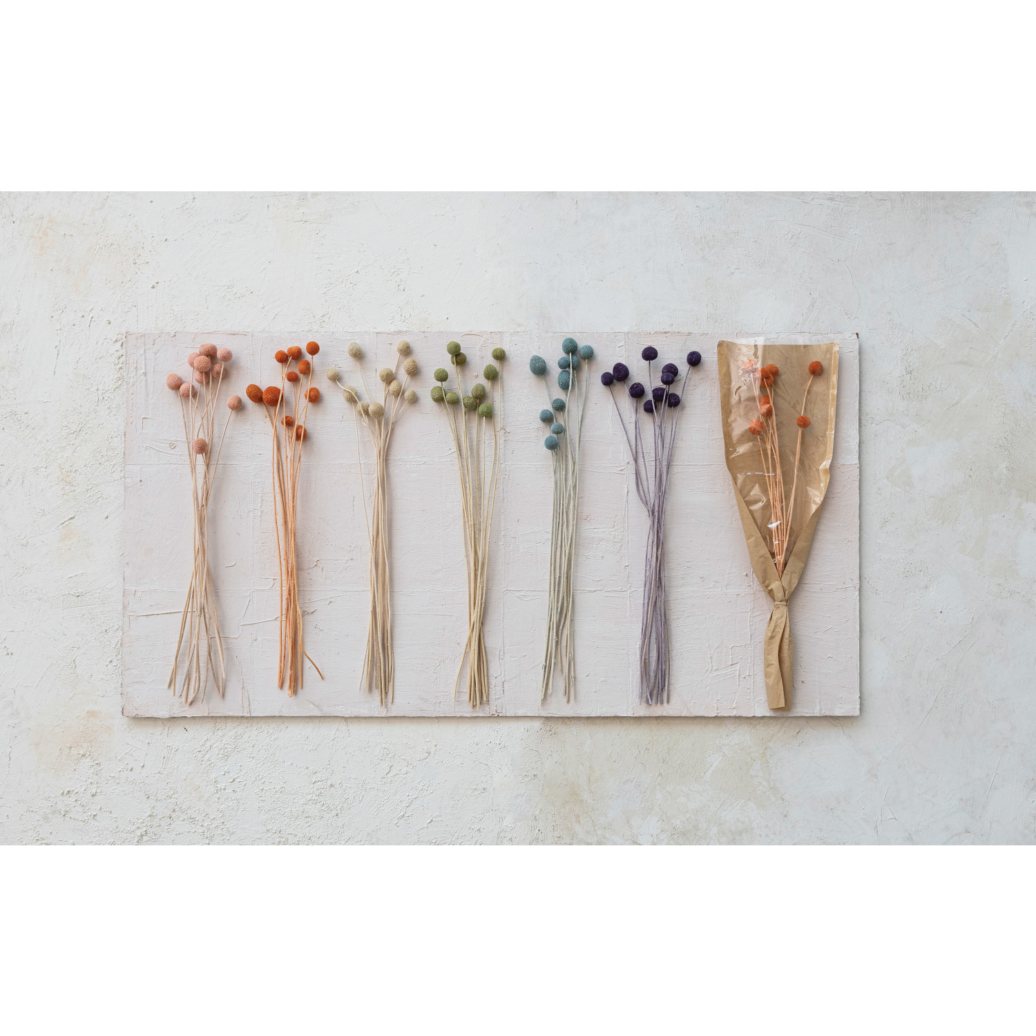 Catalog Name: 20"H Dried Natural Craspedia Bunch, 6 Colors (Contains 10 Pieces)