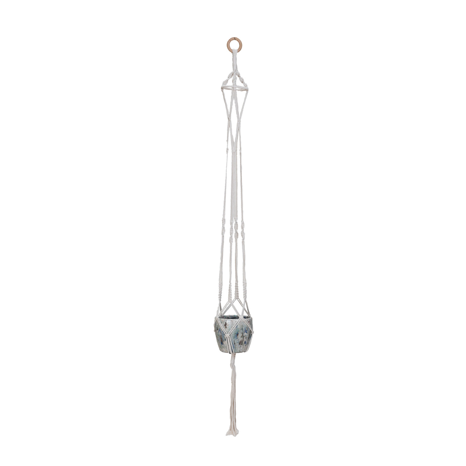 Cotton Macrame Plant Hanger w/ Wood Ring