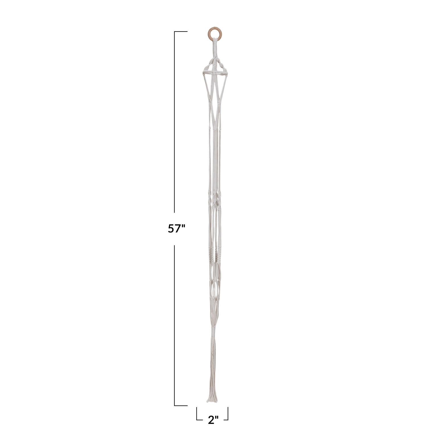 Catalog Name: 2" Round x 57"H Cotton Macrame Plant Hanger w/ Wood Ring, Natural