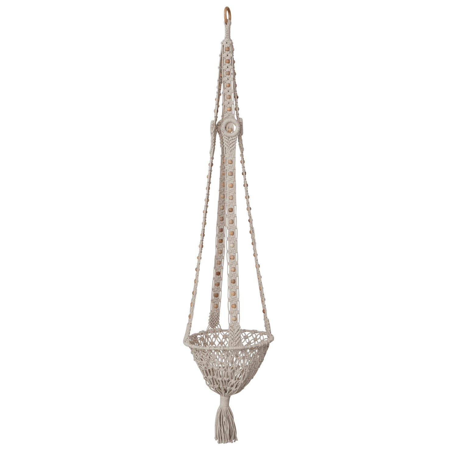 Cotton Macrame Plant Hanger with Wood Beads & Tassel, Natural
