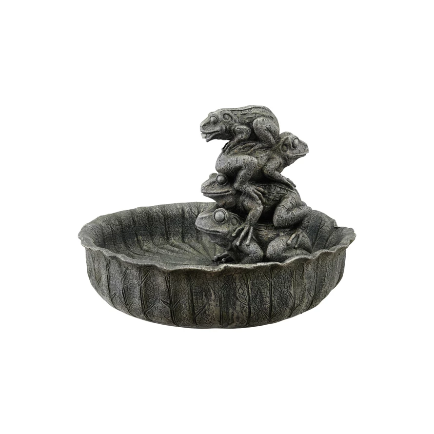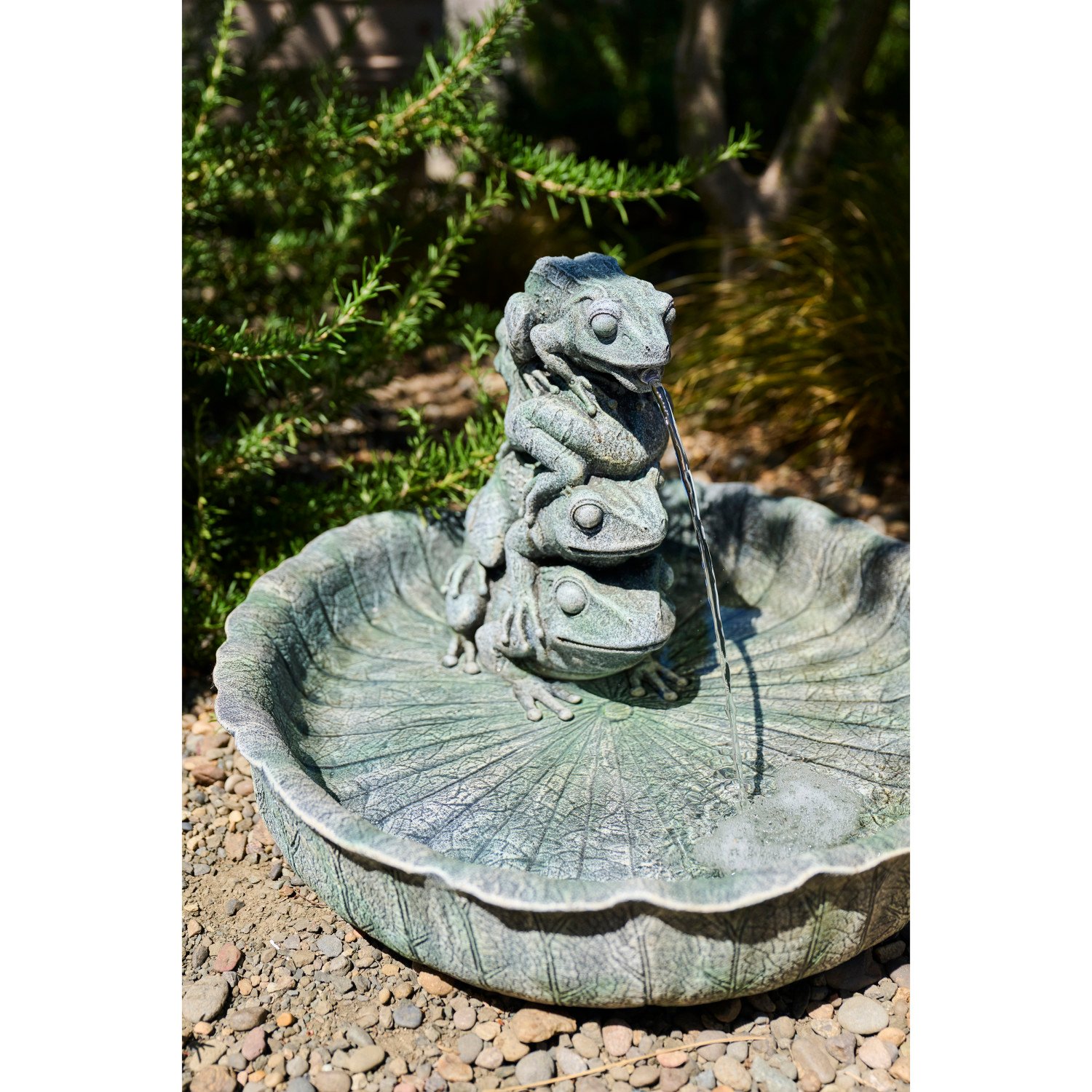 Resin Lotus Leaf Shaped Fountain with Frogs, 6' Cord, Verdigris Finish (Includes Pump Kit)