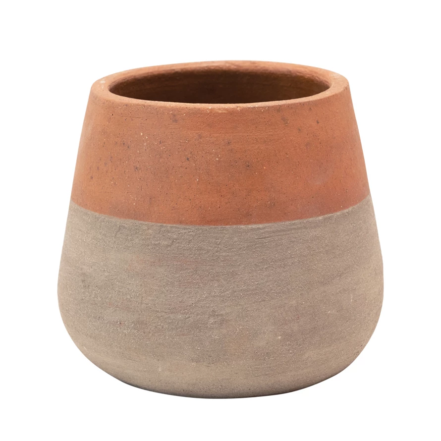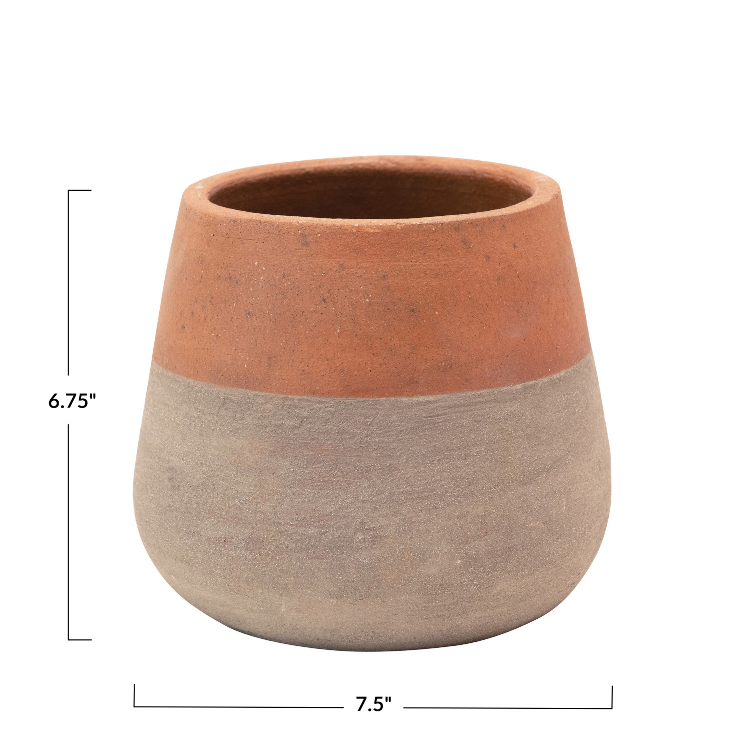 Catalog Name: 7-1/2" Round x 6-3/4"H Two-Tone Terra-cotta & Cement Planter (Holds 6" Pot)