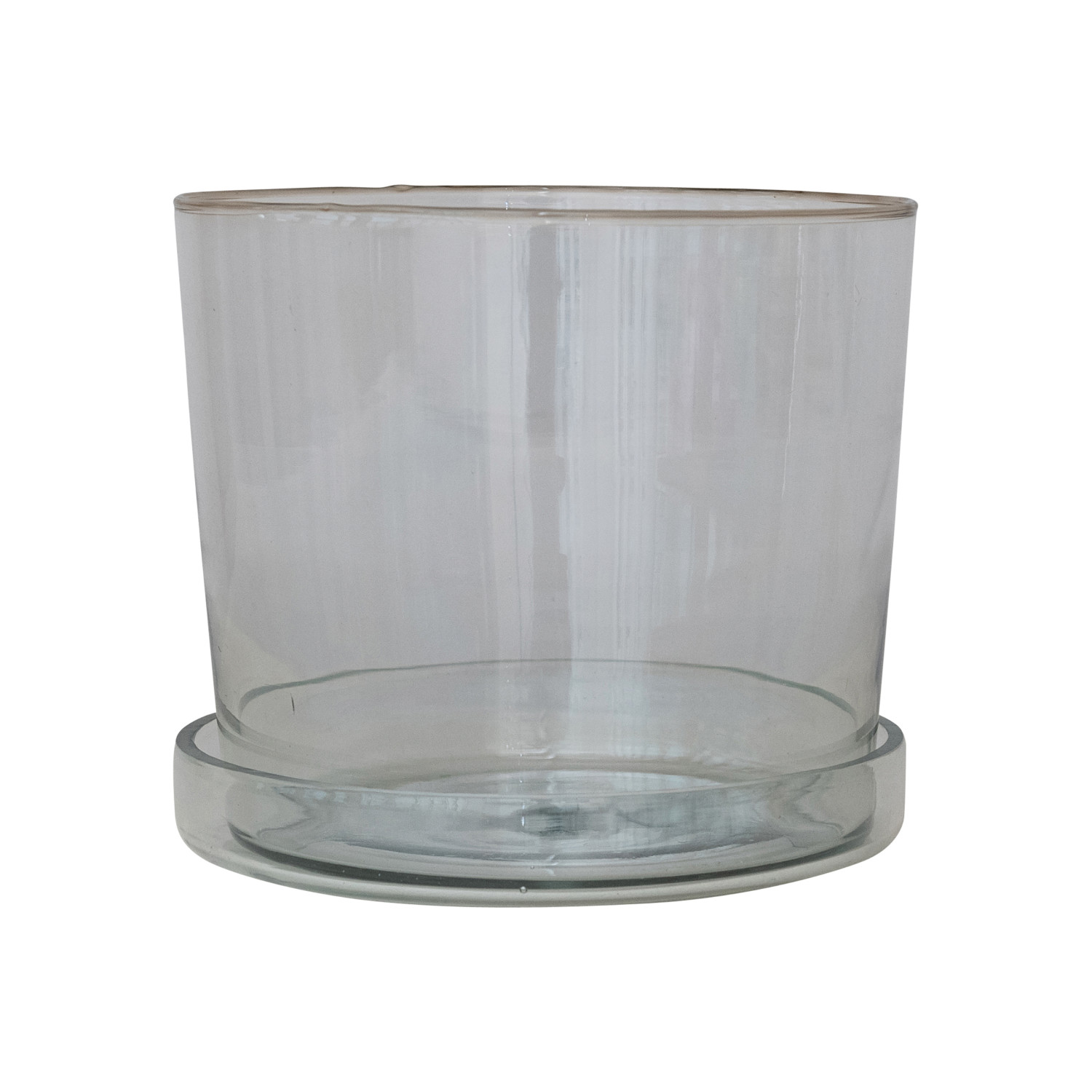 Catalog Name: 8" Round x 7-1/4"H Hand-Blown Recycled Glass Planter w/ Drainage Hole & Saucer, Set of 2 (Holds 7" Pot)