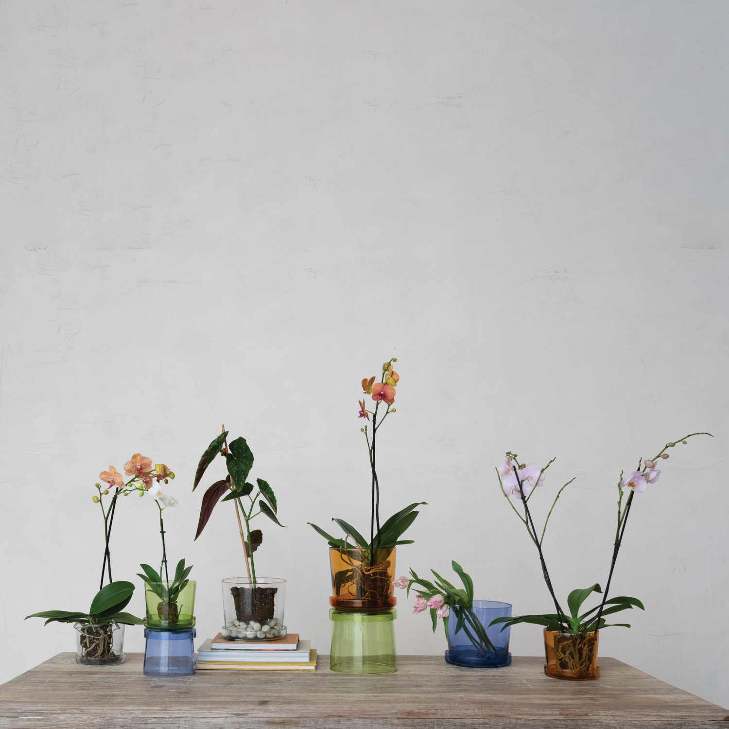 Hand-Blown Recycled Glass Planter w/ Drainage Hole & Saucer, Set of 2 (Holds 7" Pot)