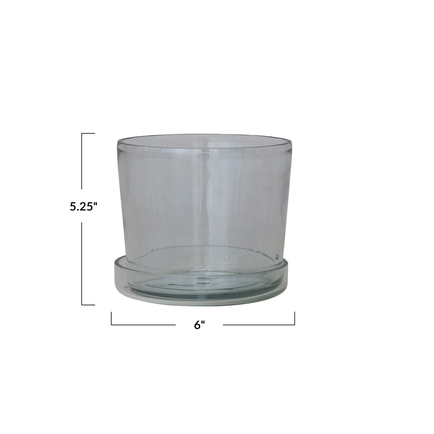 Catalog Name: 6" Round x 5-1/4"H Hand-Blown Recycled Glass Planter w/ Drainage Hole & Saucer, Set of 2 (Holds 5" Pot)