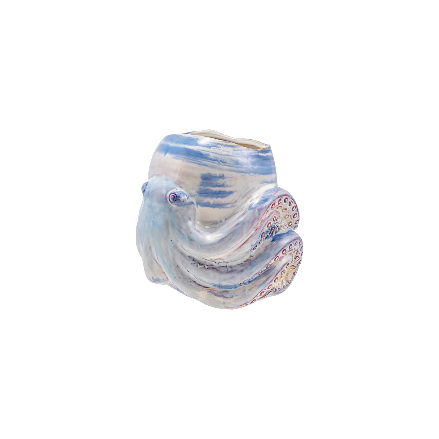 Stoneware Planter w/ Octopus, Reactive Glaze (Holds 4" Pot) (Each One Will Vary)