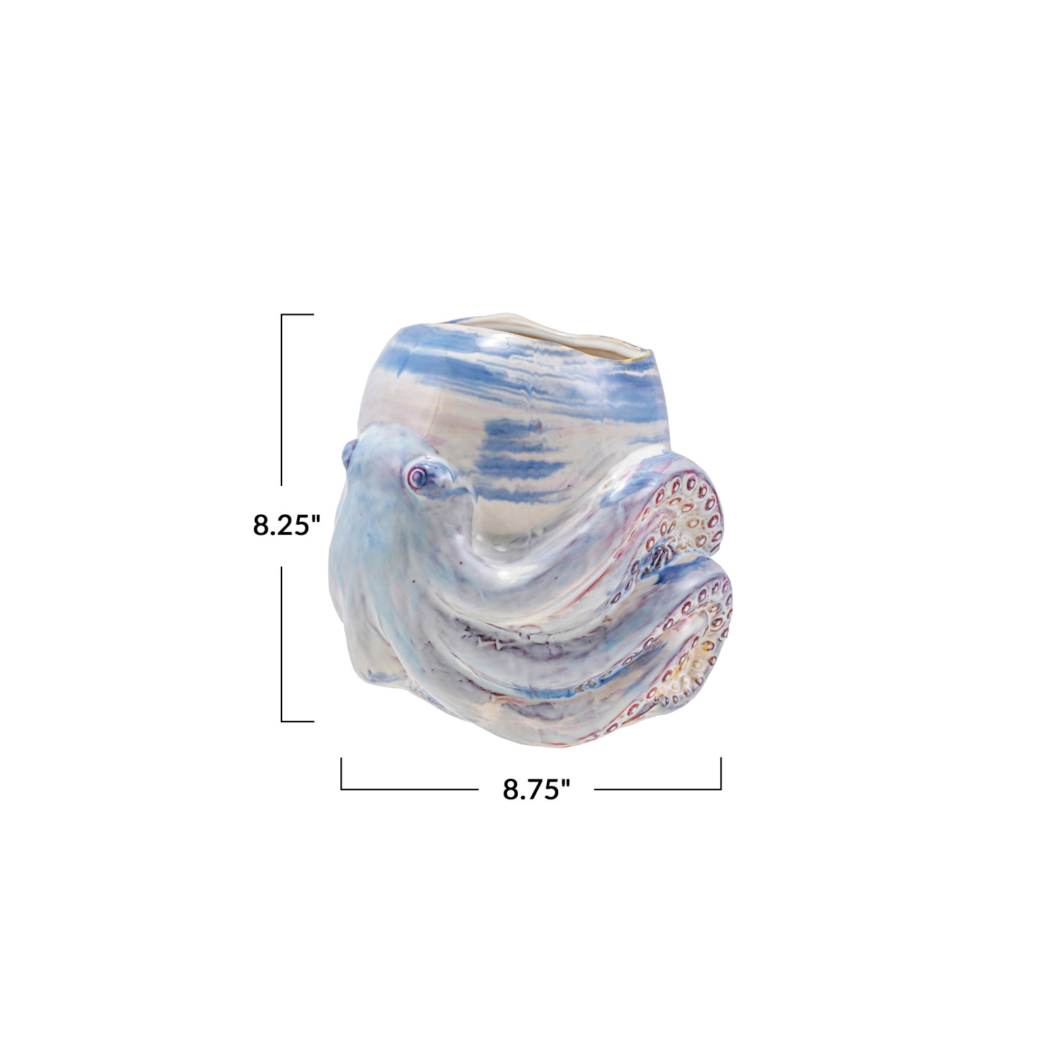 Stoneware Planter w/ Octopus, Reactive Glaze (Holds 4" Pot) (Each One Will Vary)
