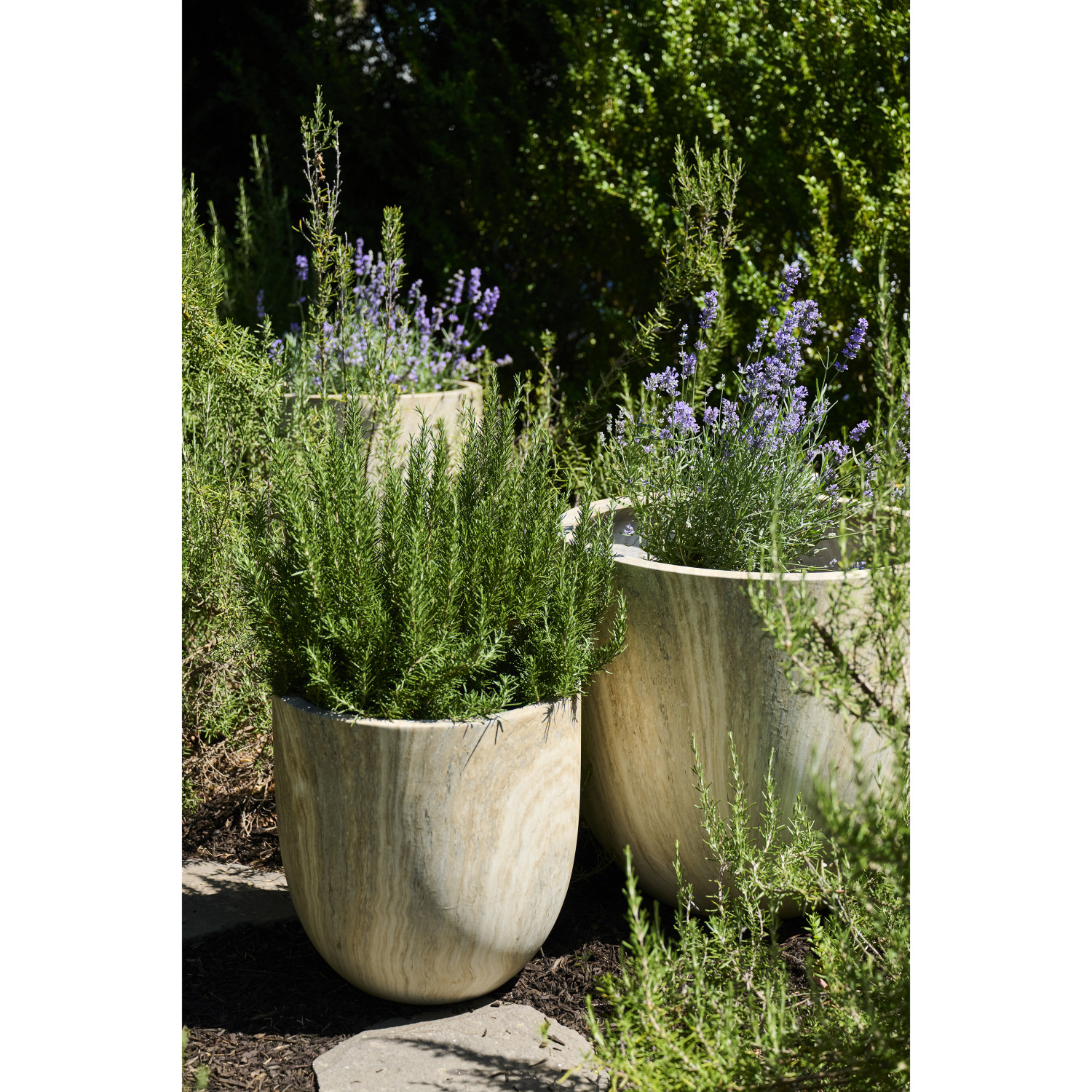 Catalog Name: 25-1/2" Round x 23-1/2"H, 21-1/2" Round x 19-1/2"H & 17-3/4" Round x 17-3/4"H Lightweight Eco Stone Indoor/Outdoor Planters, Travertine Finish, Set of 3 (Holds 24", 18" & 16" Pots)