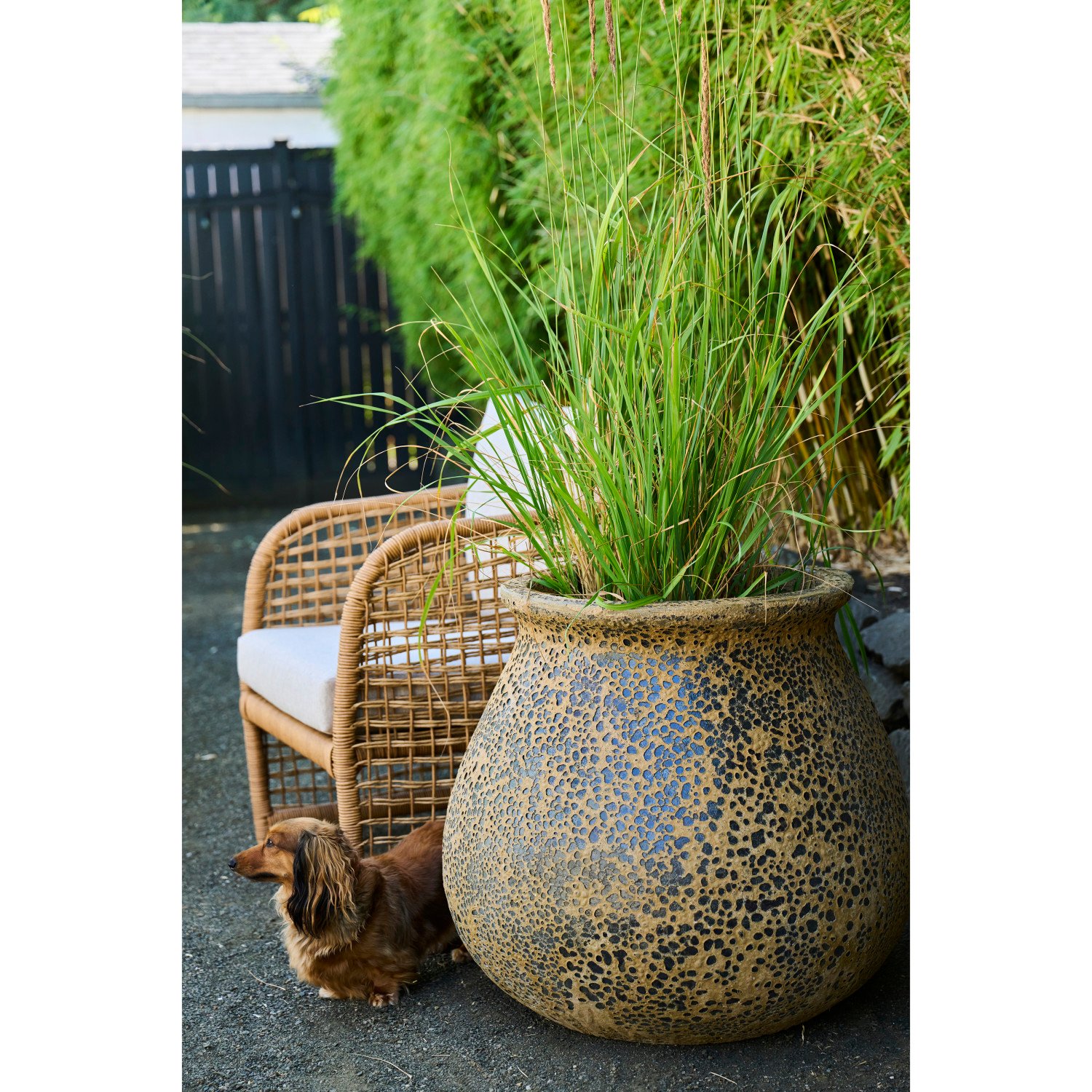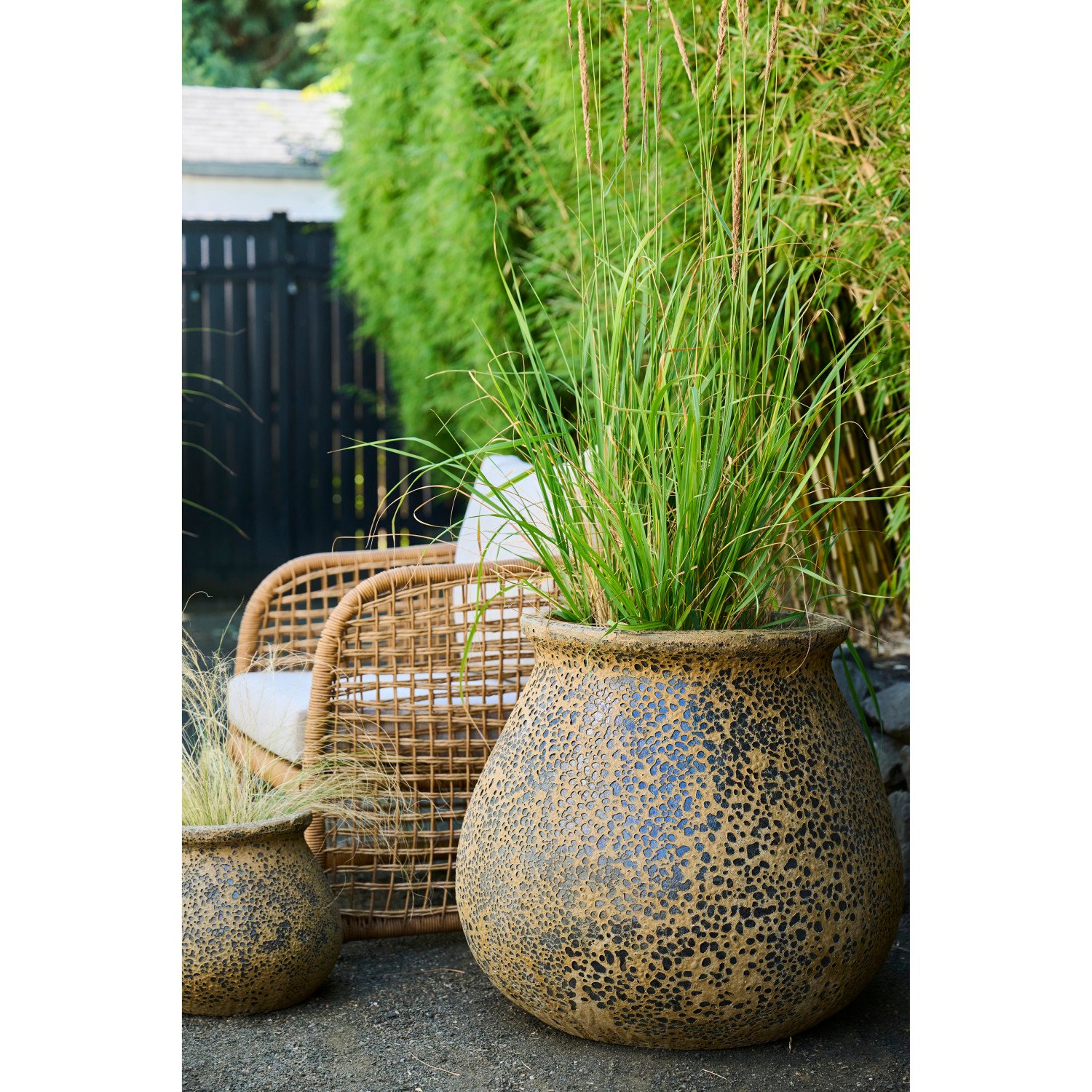 Catalog Name: 27-1/2" Round x 24-1/2"H & 12-1/2" Round x 12"H Stoneware Planters, Reactive Glaze, Volcano Finish, Coffee Color, Set of 2, Truck Ship (Each One Will Vary) (Ships on Pallet)