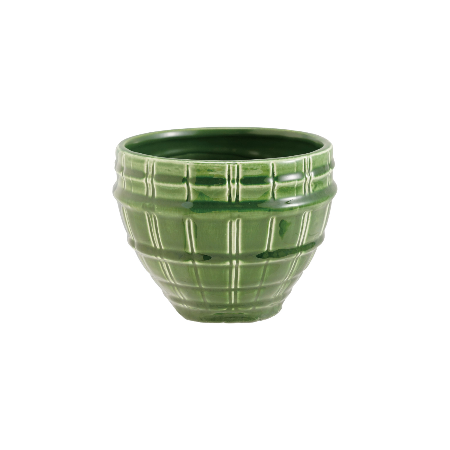 Debossed Stoneware Planter, Green (Holds 2" Pot) (Each One Will Vary)