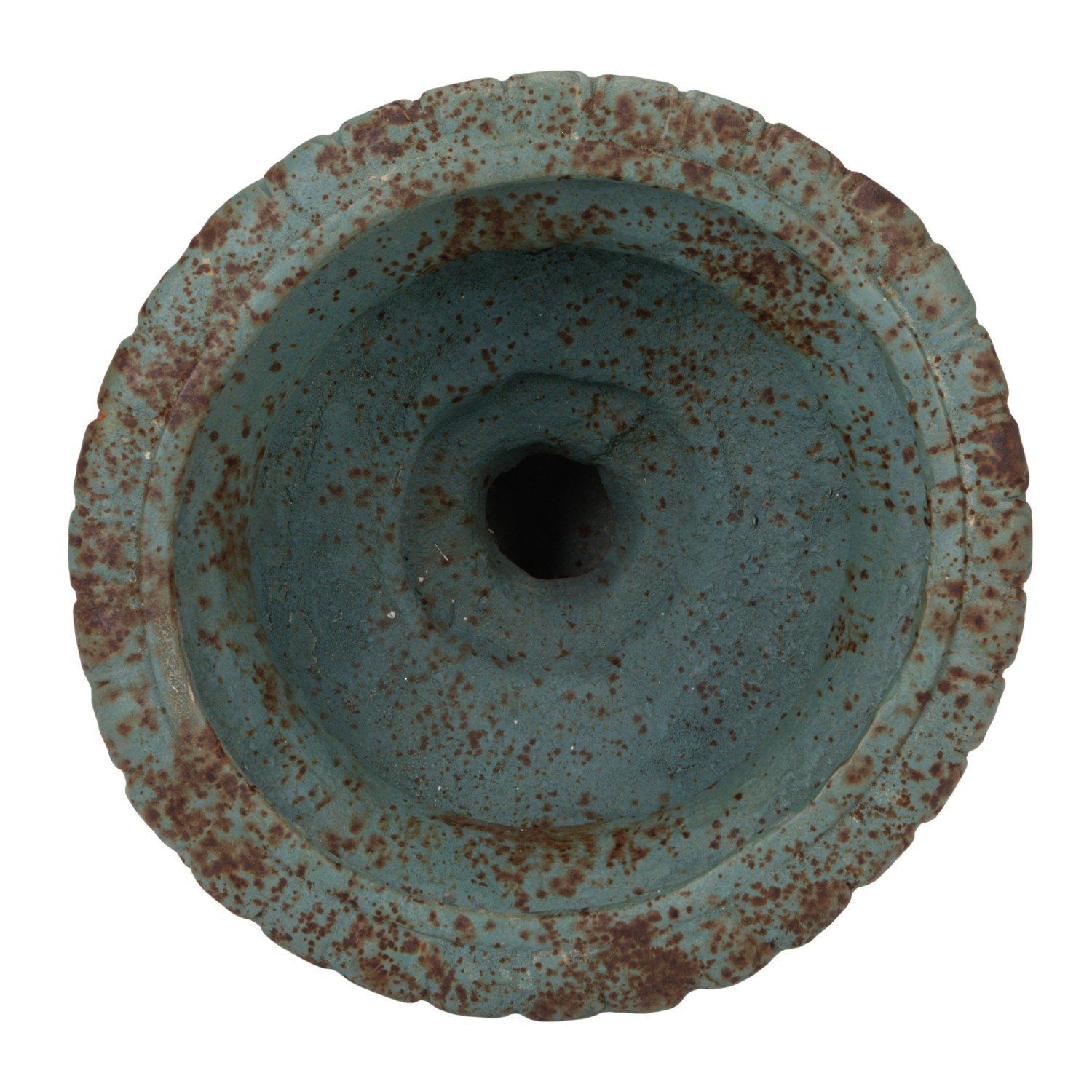 Catalog Name: 21" Round x 19"H Magnesia Urn, Heavily Distressed Finish, Blue, Truck Ship