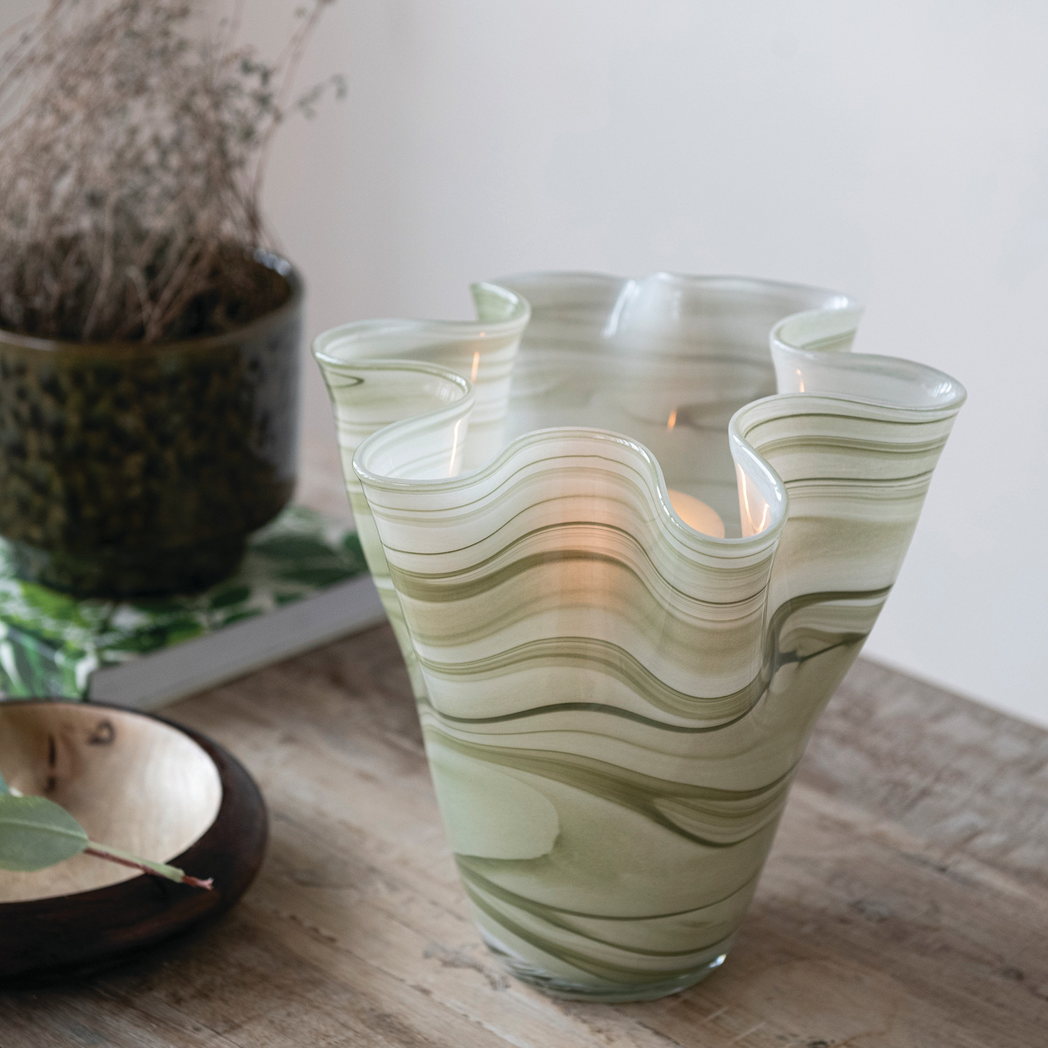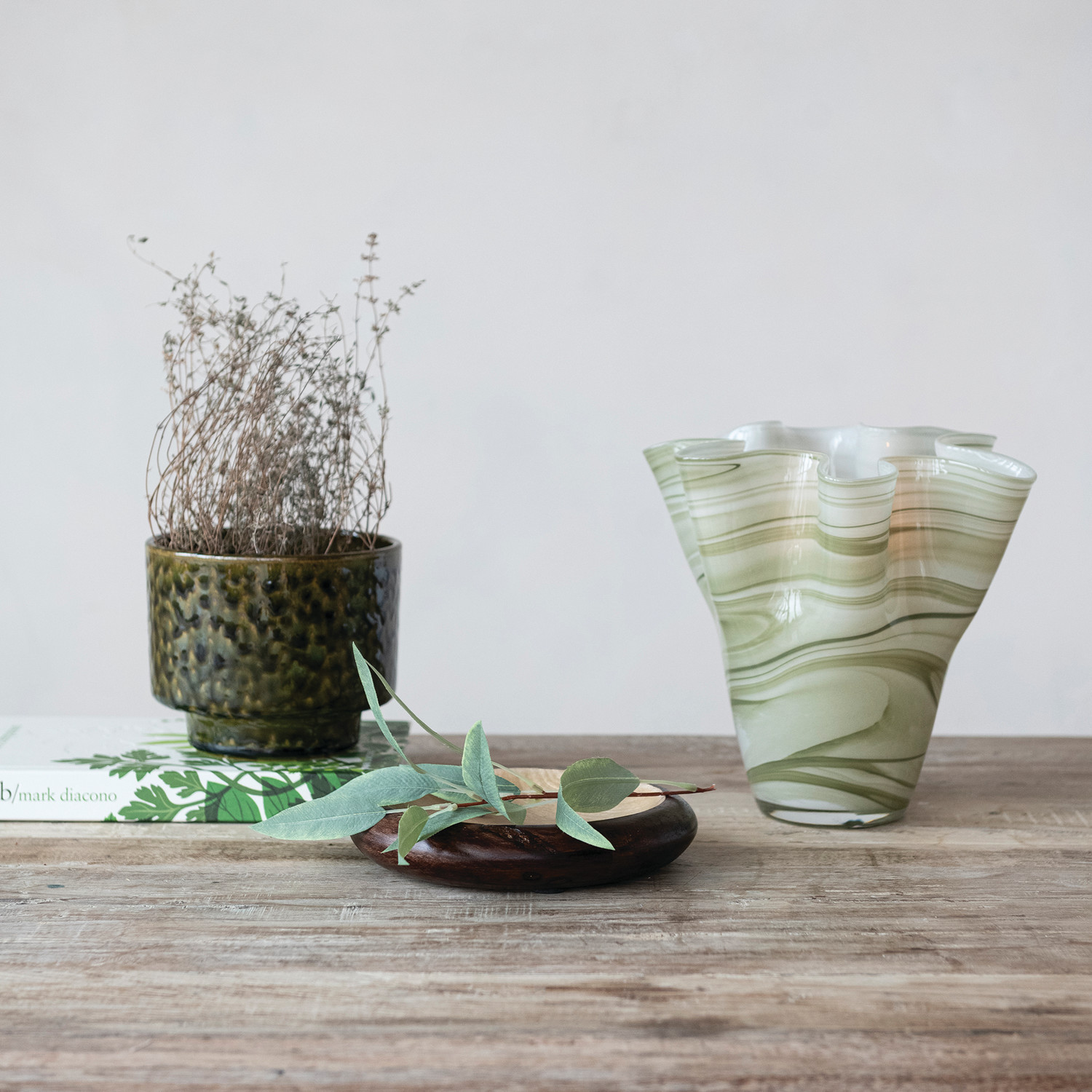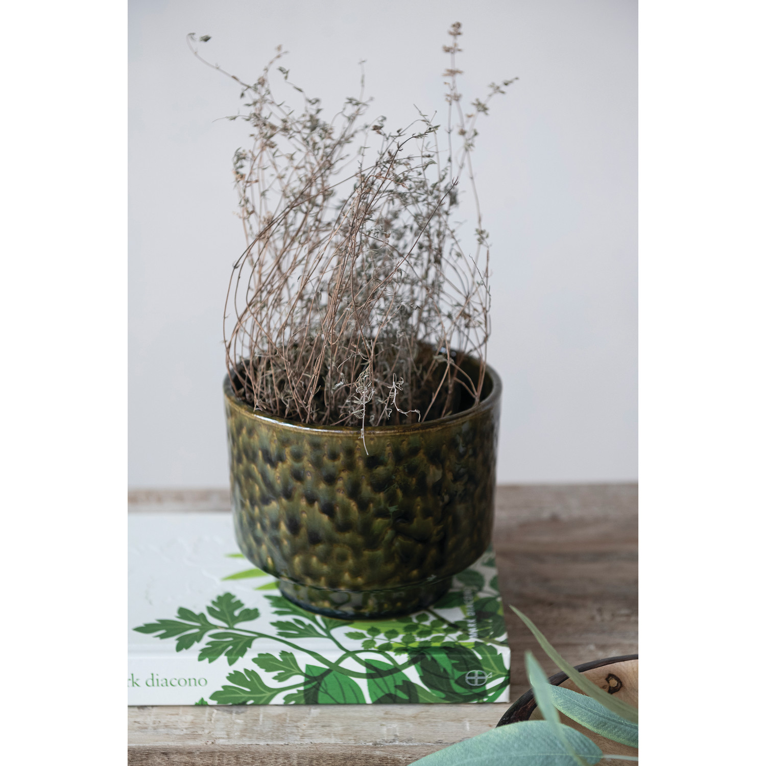 Stoneware Footed Planter, Green (Holds 5" Pot) (Each One Will Vary)