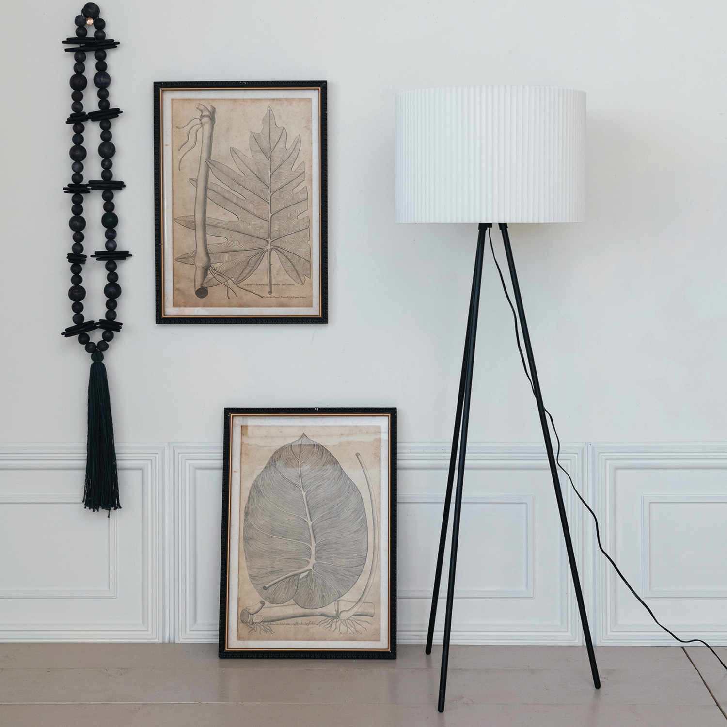 Catalog Name: 36"L Oak Wood Beads w/ Cotton Tassel, Black