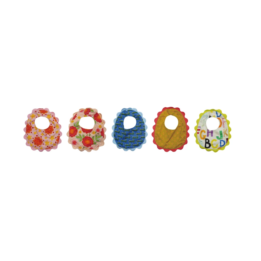 Catalog Name: 10"L x 9"W Cotton Baby Bib w/ Terry Cloth Back, Pattern & Ric Rac Trim, Multi Color, 5 Styles ©