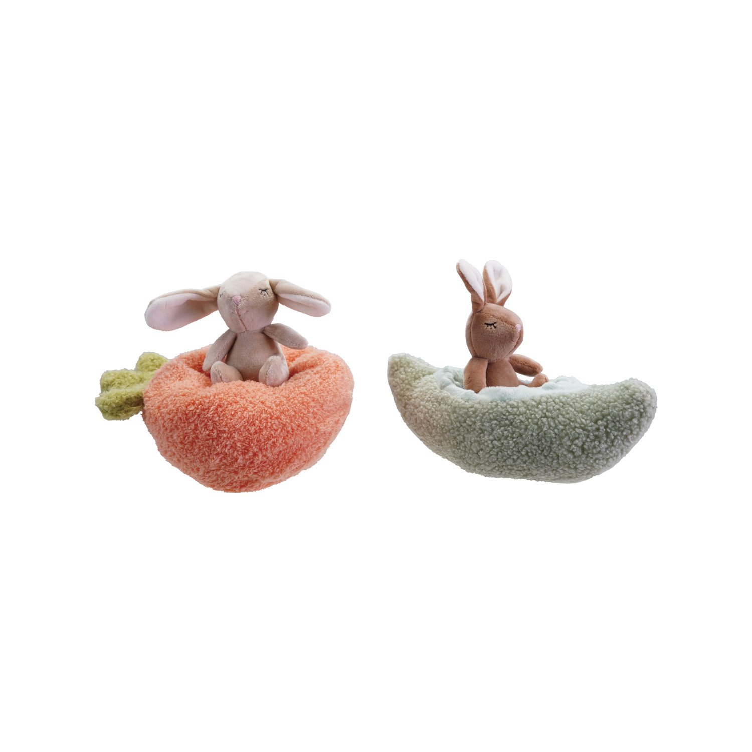 Plush Animal with Carrot/Pod Shaped Bed, Set of 2, 2 Styles