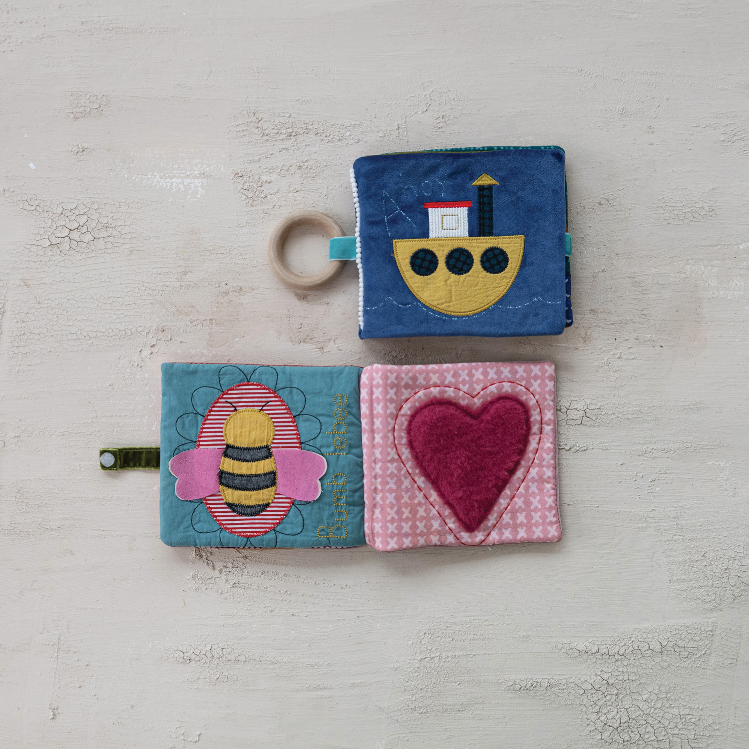 Catalog Name: 6-3/4"L x 6-1/4"W Cotton Interactive Sensory Book w/ Wood Ring & Velcro Clasp, Multi Color, 2 Styles ©