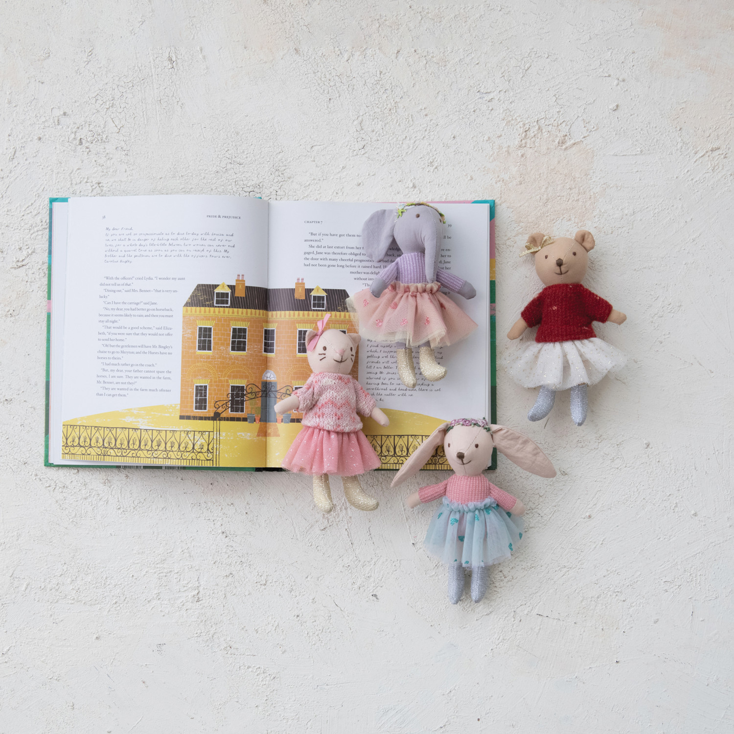 Catalog Name: 3"L x 2"W x 7"H Plush Cotton Animal in Clothes/Dress, Multi Color, 4 Styles
