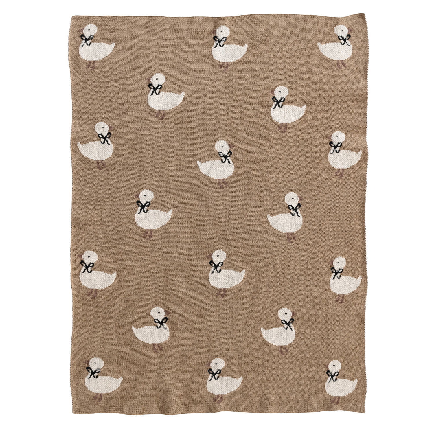 Catalog Name: 40"L x 32"W Cotton Knit Baby Blanket w/ Ducklings, Multi Color