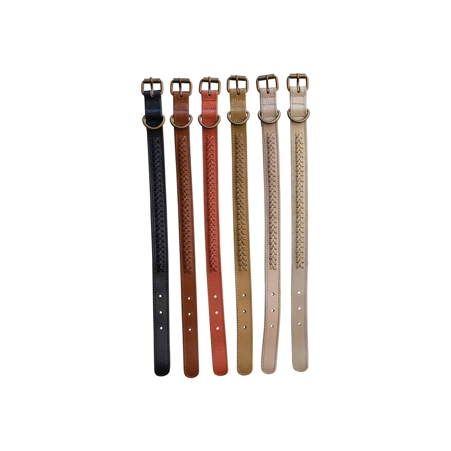 Braided Leather Dog Collar w/ Metal Buckle, 6 Colors, Small