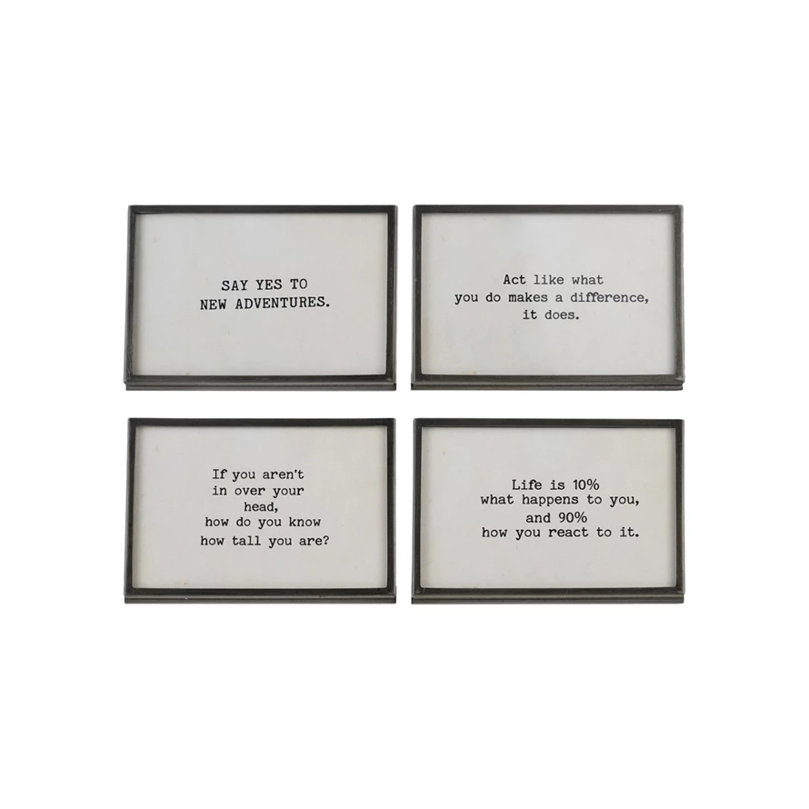 Catalog Name: 6"W x 4"H Metal & Glass Frame w/ Easel & Saying, Gunmetal Finish, 4 Styles (Holds 4" x 6" Photo)
