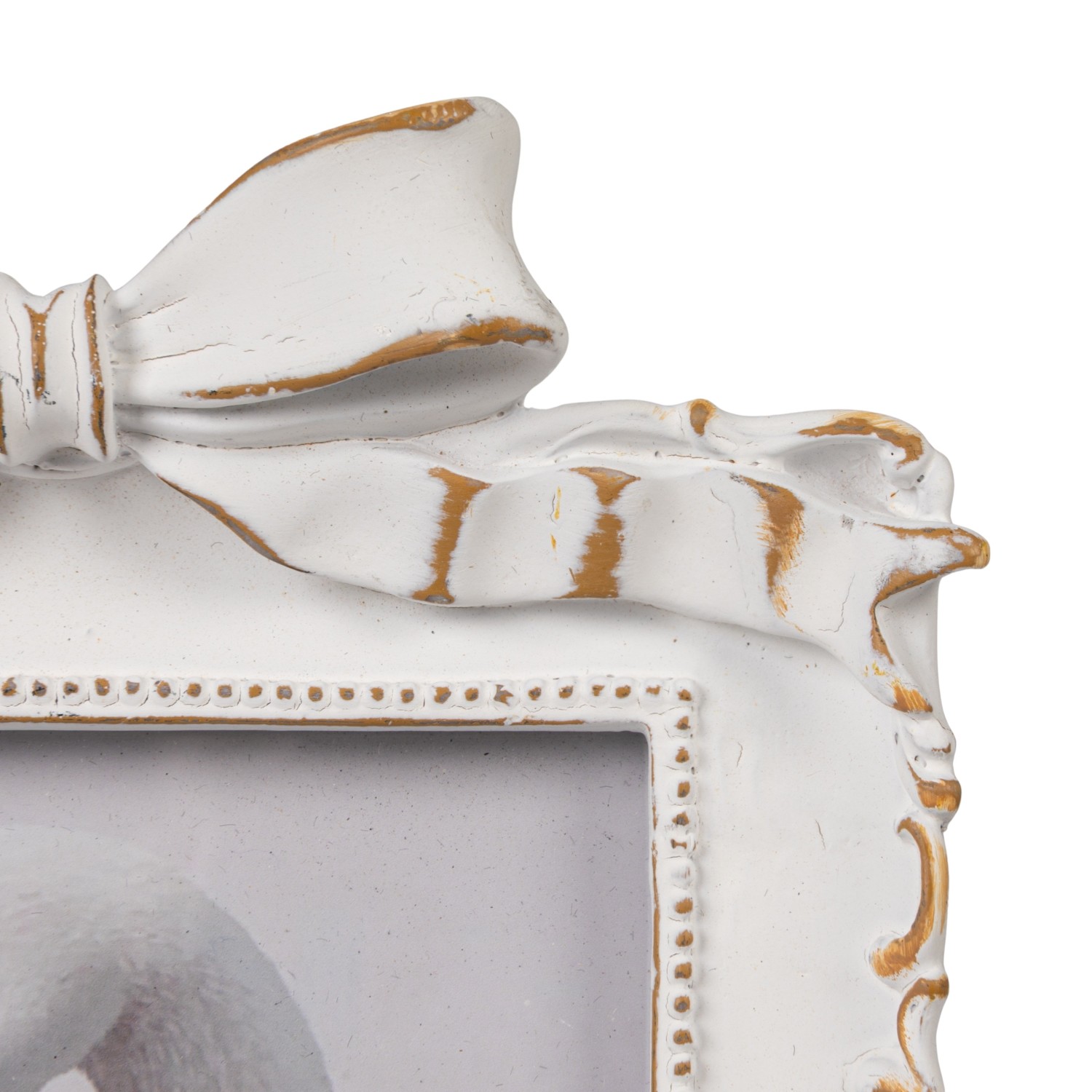 Plastic Photo Frame with Bow, Antique White & Gold Finish (Holds 4" x 6" Photo)