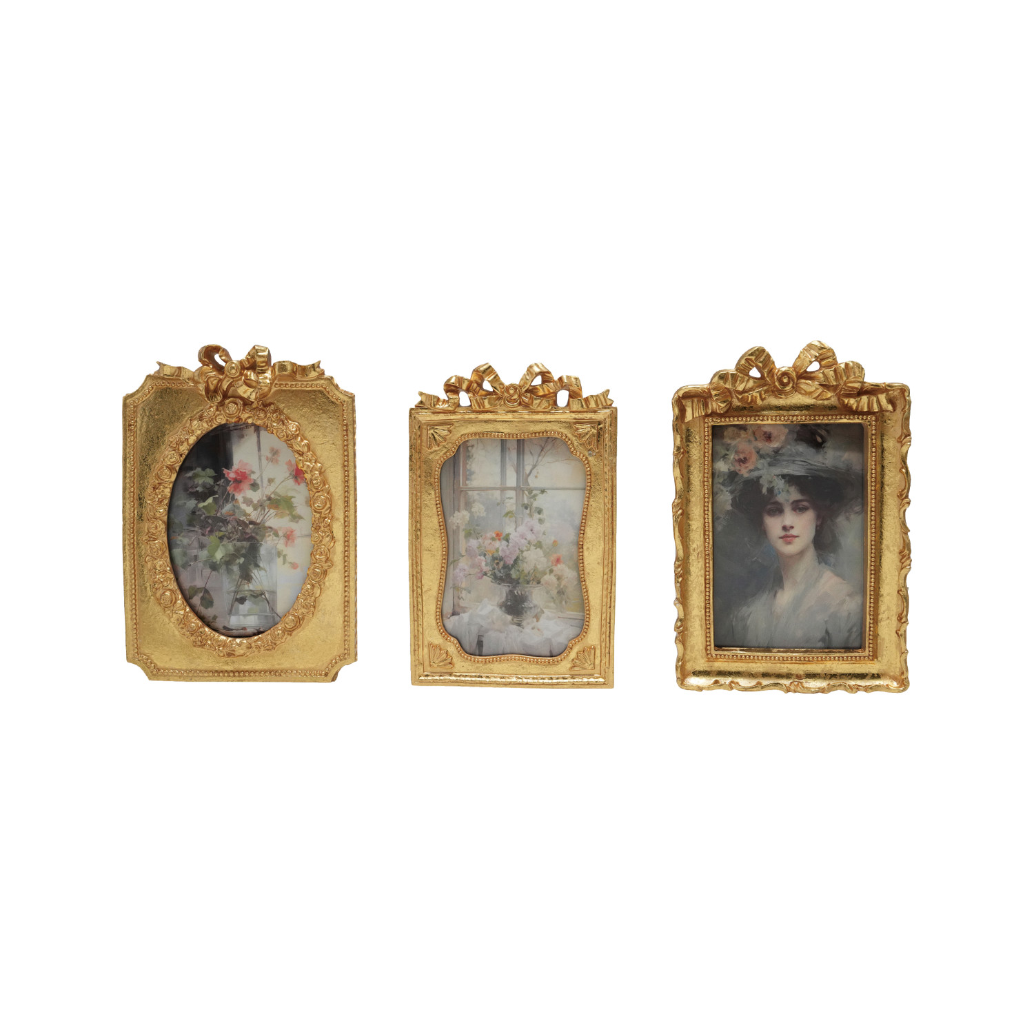 Resin Photo Frame with Bow, Gold Finish, 3 Styles (Holds 4" x 6" Photo)