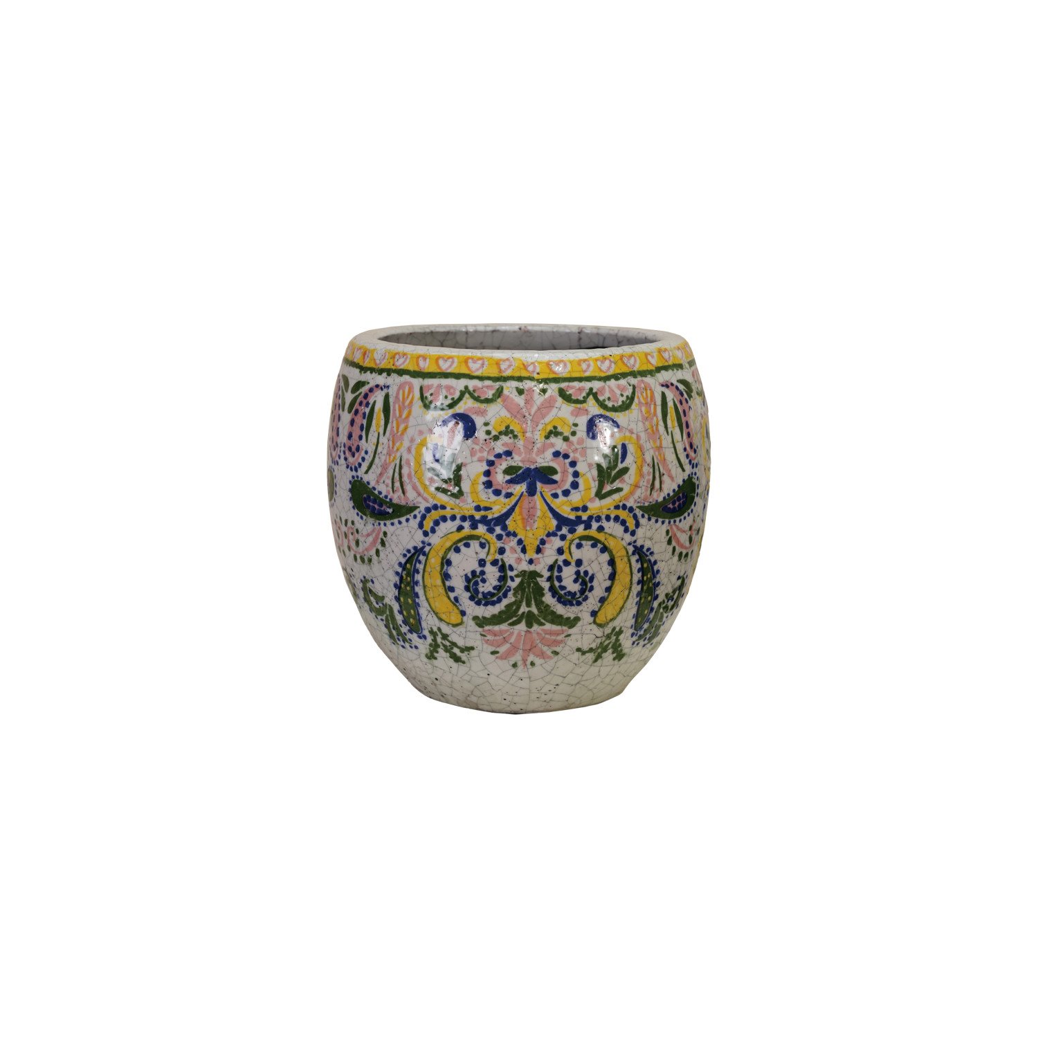 Catalog Name: 7-3/4" Round x 7"H Terra-cotta Planter w/ Floral Pattern, Crackle Glaze, Multi Color (Holds 7" Pot) (Each One Will Vary)