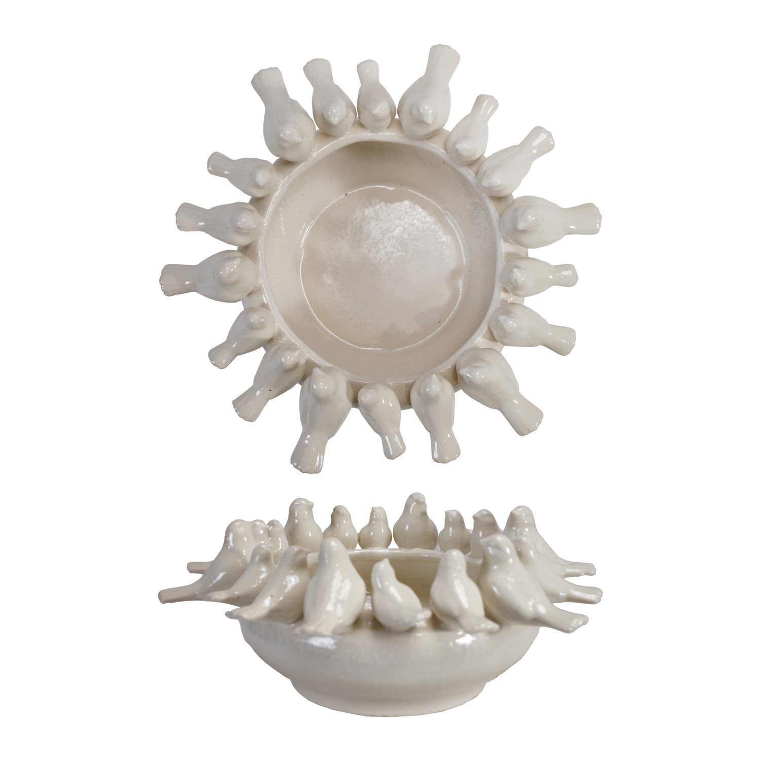 Decorative Stoneware Bowl/Planter with 3D Birds on Rim, White