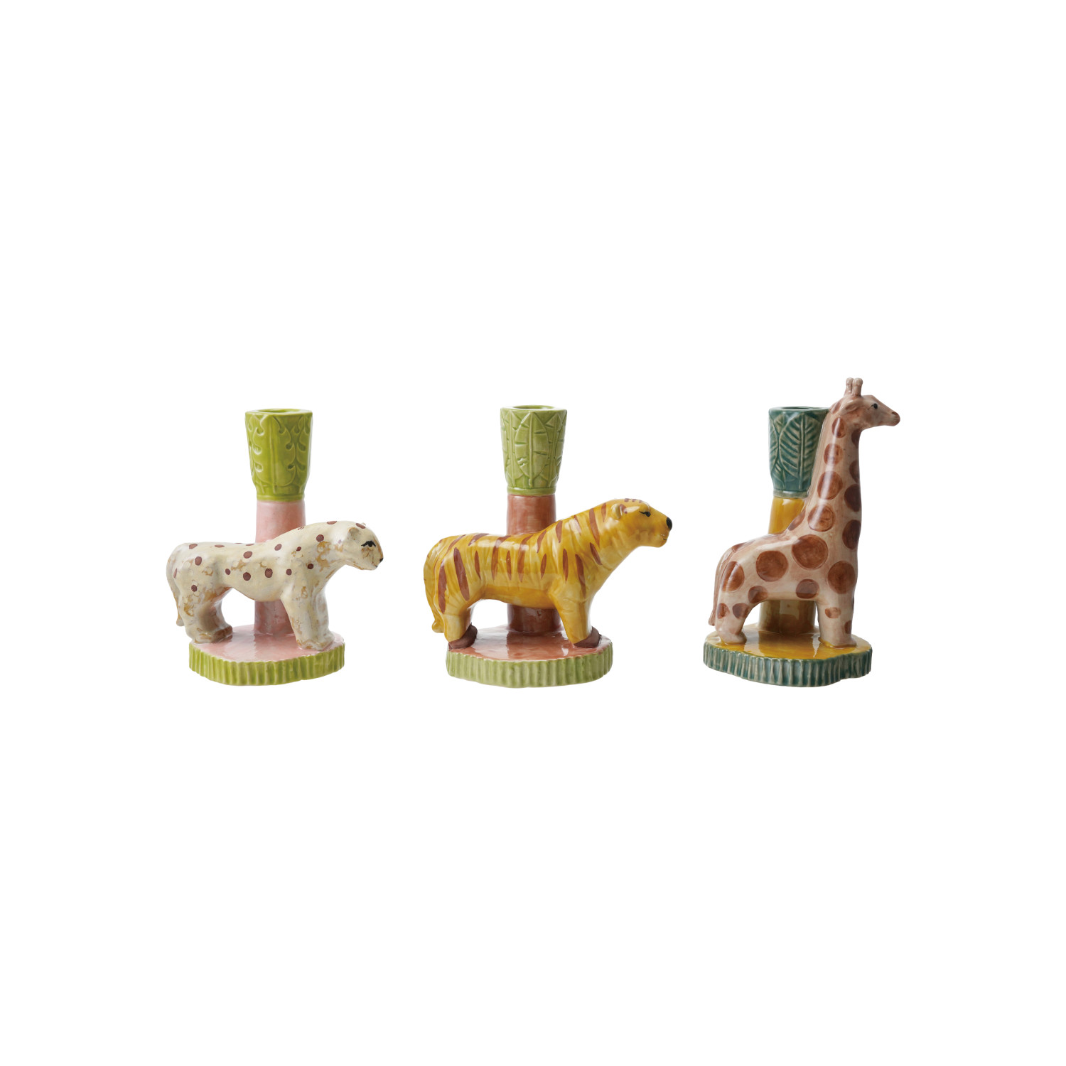 Catalog Name: 6"L x 3-1/2"W x 6-1/4"H Handmade Stoneware Safari Animal Taper Holder, Multi Color, 3 Styles