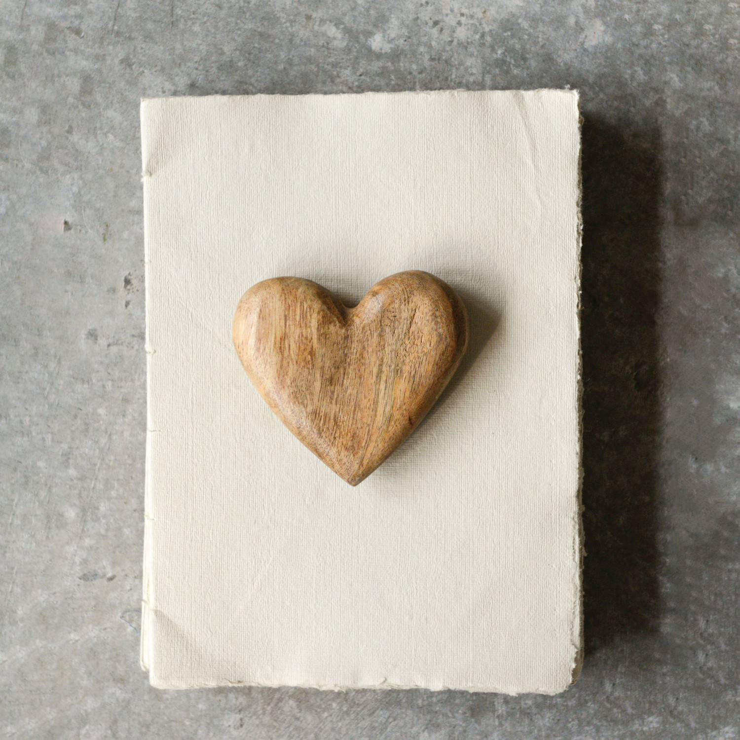 Catalog Name: 4-1/4"L x 4"W Hand-Carved Mango Wood Heart, Natural