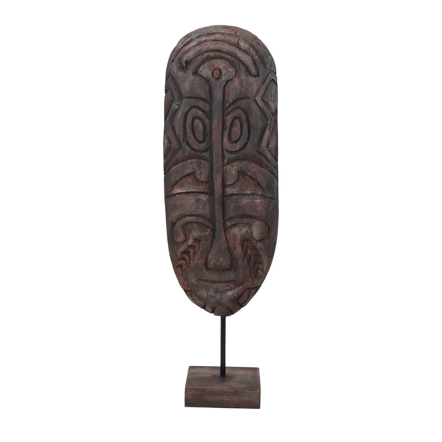 Catalog Name: Approximately 8"L x 4-1/2"W x 22-1/4"H Hand-Carved Mango Wood Mask on Stand, Espresso Finish (Each One Will Vary)
