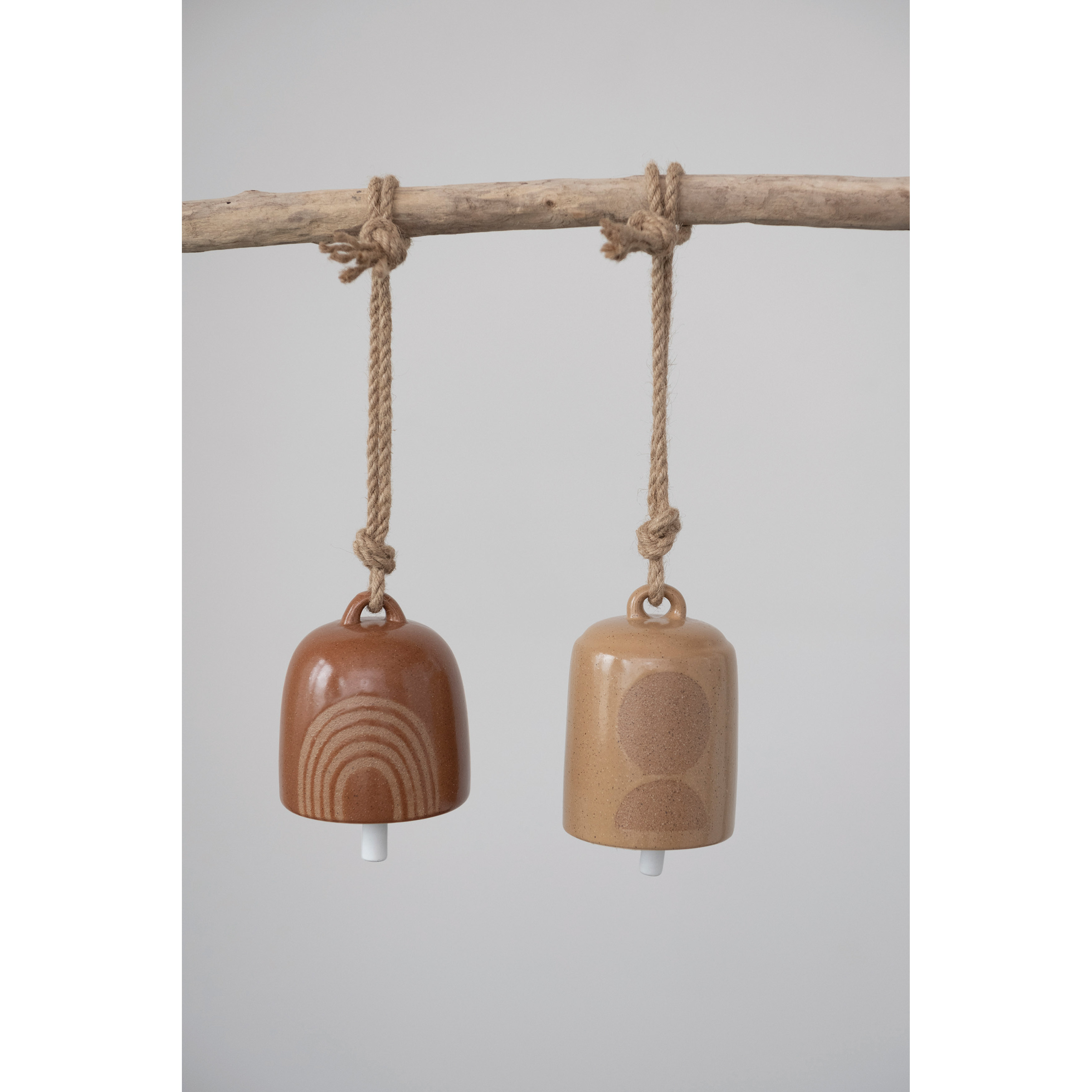 Stoneware Bell with Circle/Rainbow Design, Reactive Glaze, 2 Colors, 2 Styles