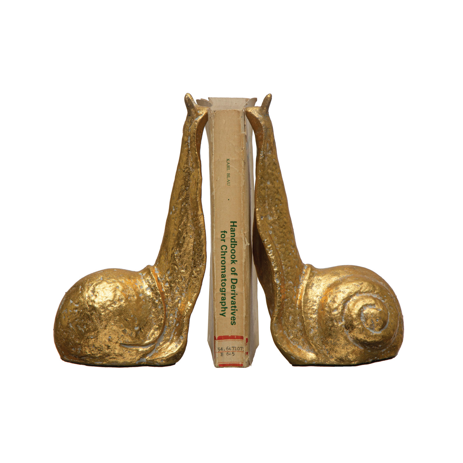 Catalog Name: 5-1/4"L x 3-1/2"W x 9"H Cast Iron Snail Shaped Bookends, Distressed Gold Finish, Set of 2