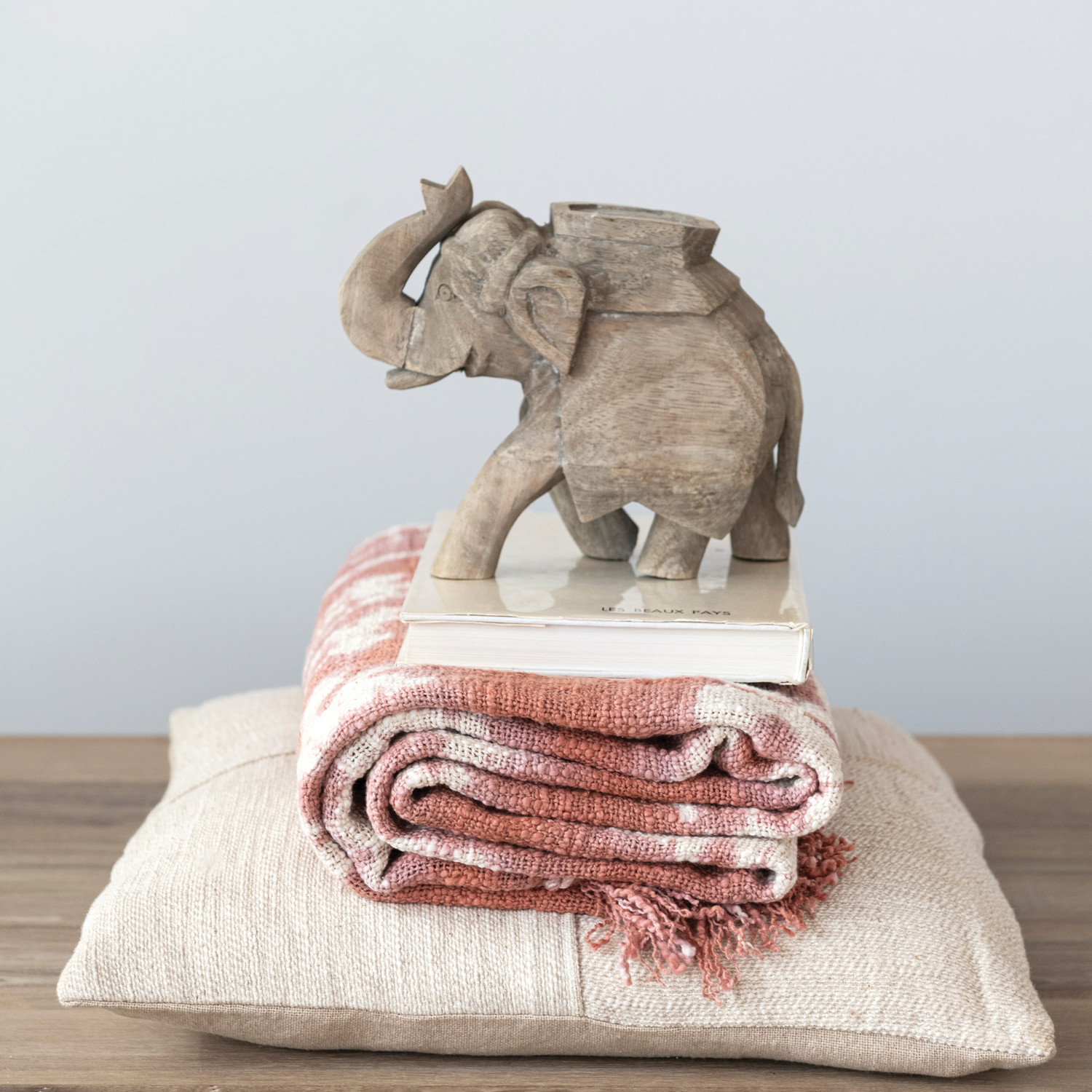 Catalog Name: 9-1/2"L x 4"W x 7"H Hand-Carved Mango Wood Elephant, Sandwashed Finish (Each One Will Vary)