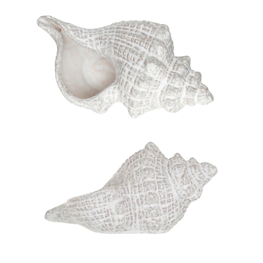 Bring the charm of the ocean to any home with this stoneware conch shell accent decor. This exquisite piece features a realistic conch shell shape with intricate details and textures. The glossy white finish adds a touch of elegance and sophistication to this coastal-inspired decor. Create a nautical theme or just add some seaside flair, this stoneware conch shell will enhance any space with its beauty and style. It can be displayed on a shelf, table, or mantel, or used as a centerpiece or a vase for some favorite flowers. This accent decor is made of high-quality stoneware that is durable and easy to clean. This stoneware conch shell accent decor is a must-have for anyone who loves the sea and its wonders.