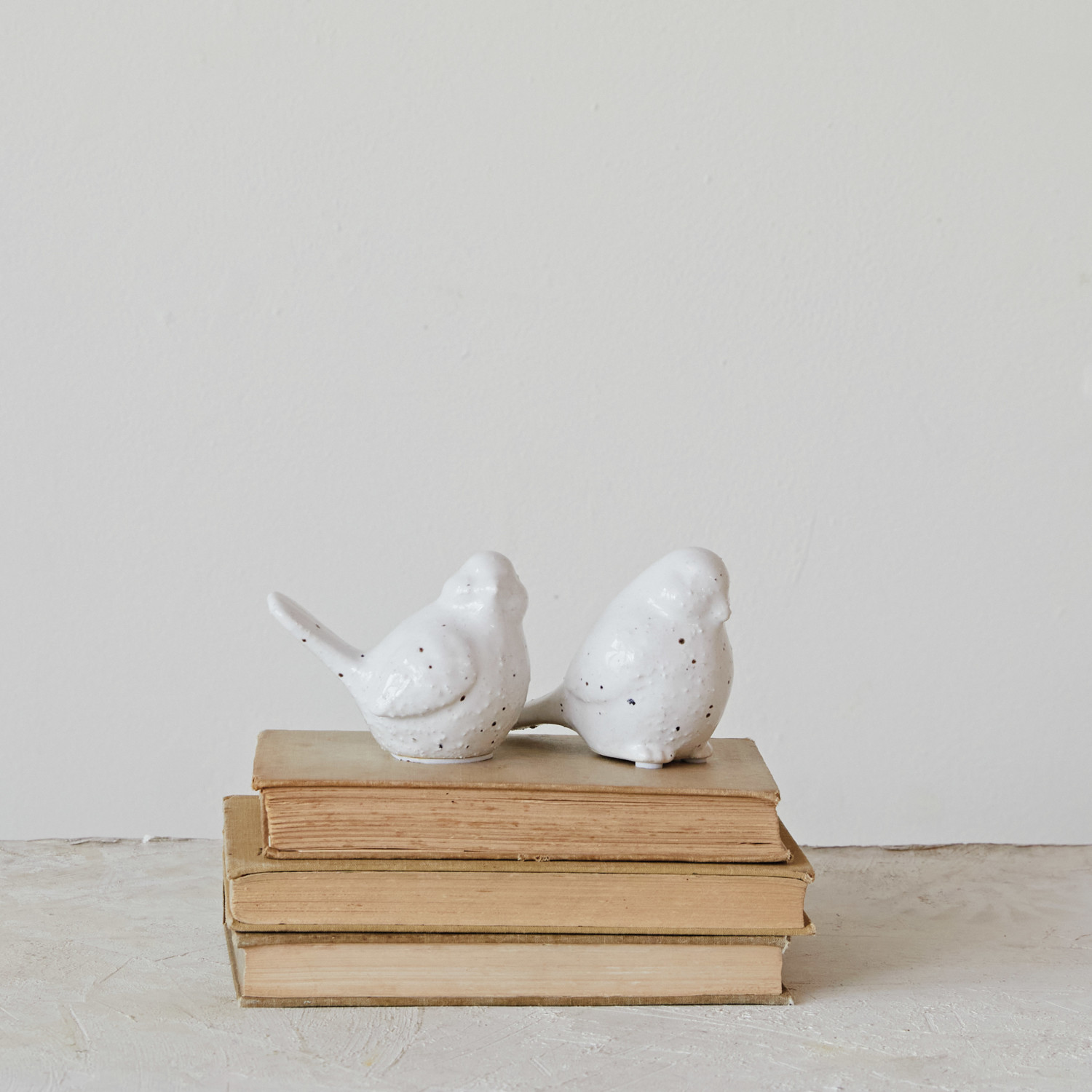 Catalog Name: 4-1/4"L x 2-1/2"W x 3"H Stoneware Bird, White Speckled, 2 Styles