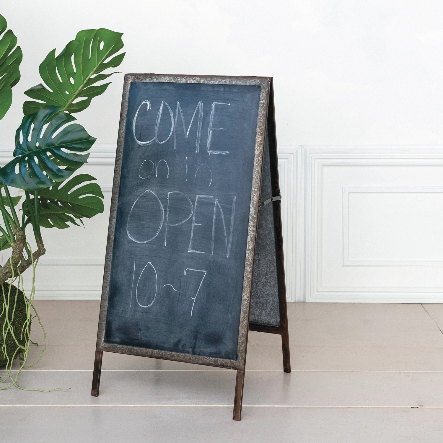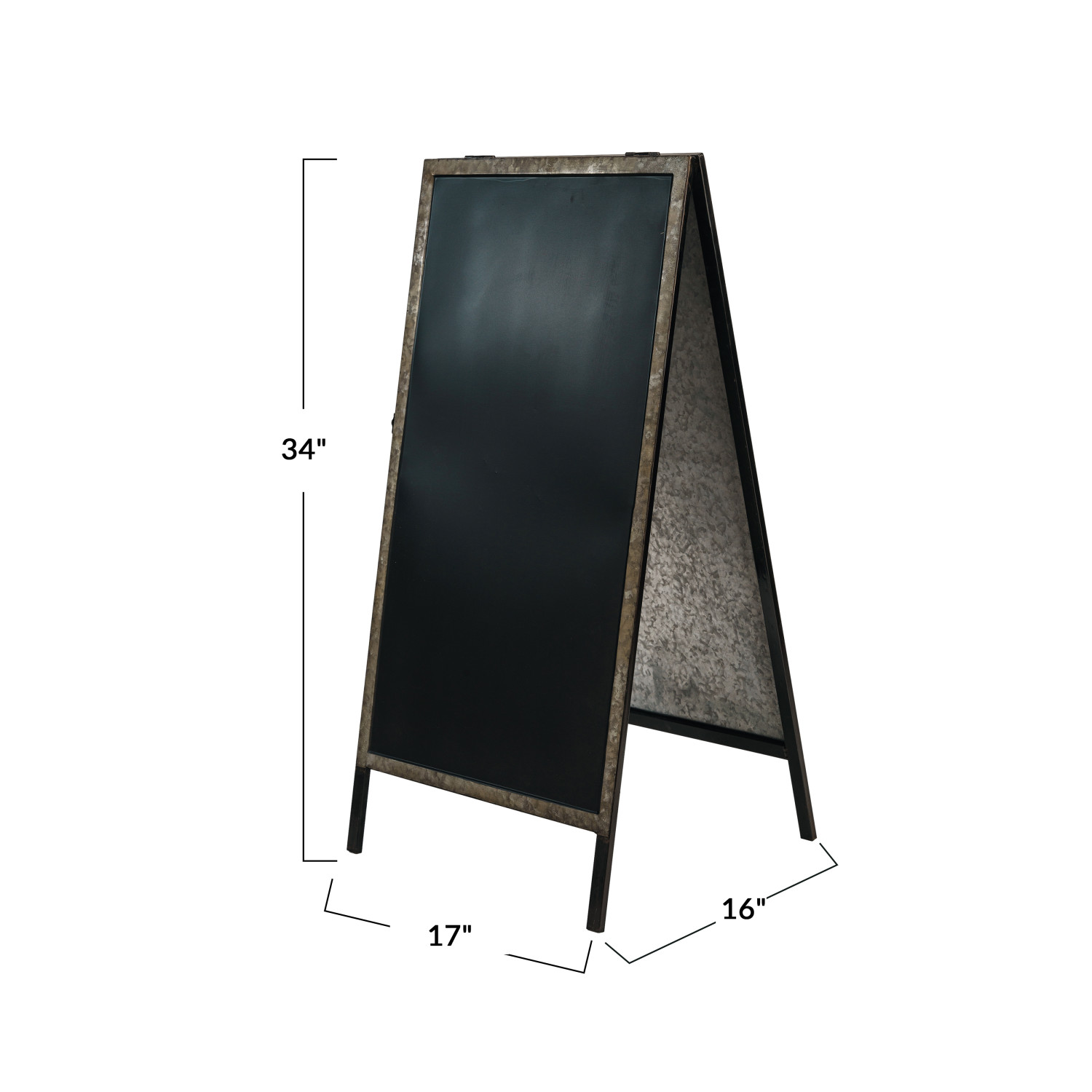 Catalog Name: 17"L x 16"W x 34"H Galvanized Metal Sandwich Chalkboard, Black