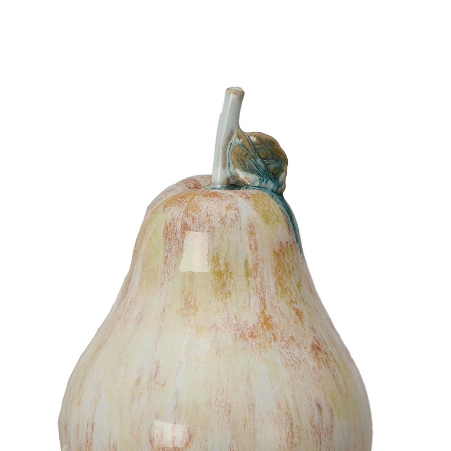 This Stoneware Pear Decoration is not just a piece of decor but a statement of style. Crafted from durable stoneware and finished with a reactive glaze, it features a rich blend of colors, with each piece varying slightly for a one-of-a-kind look. The round, 3.5-inch diameter and 5-inch height dimensions make it an ideal size for various settings, while its rustic, Southwestern, and Transitional design influences ensure it will complement a wide range of interior styles. Whether used as a standalone piece or as part of a collection, this pear decoration is sure to captivate and charm. Perfect for adding a pop of color to a shelf, table, or mantel, this Stoneware Pear Decoration is a must-have for those looking to elevate their space with sophisticated flair.