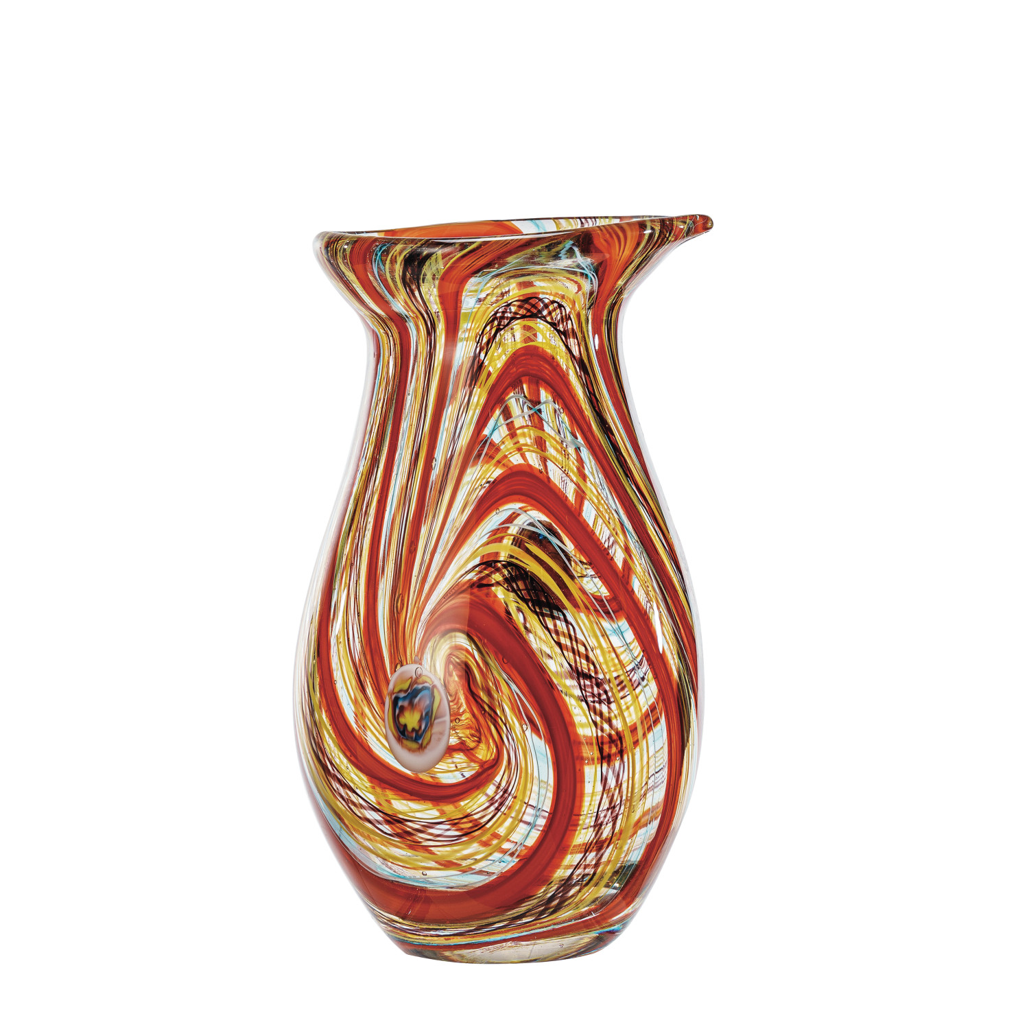 Catalog Name: 5-3/4" Round x 11"H Handmade Art Glass Vase, Multi Color, Truck Ship
