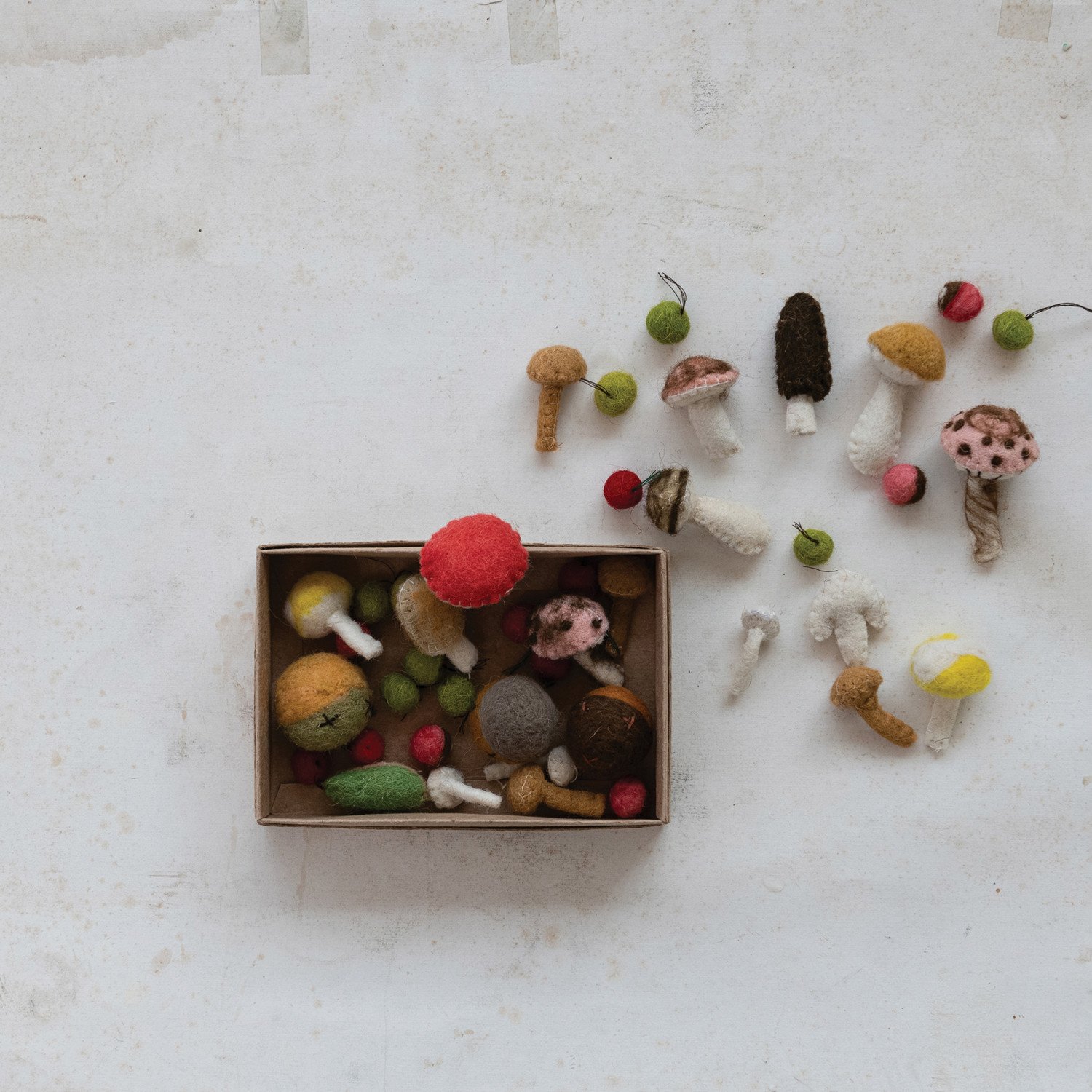Wool Felt Mushrooms & Berries Scatter, Boxed Set of 40