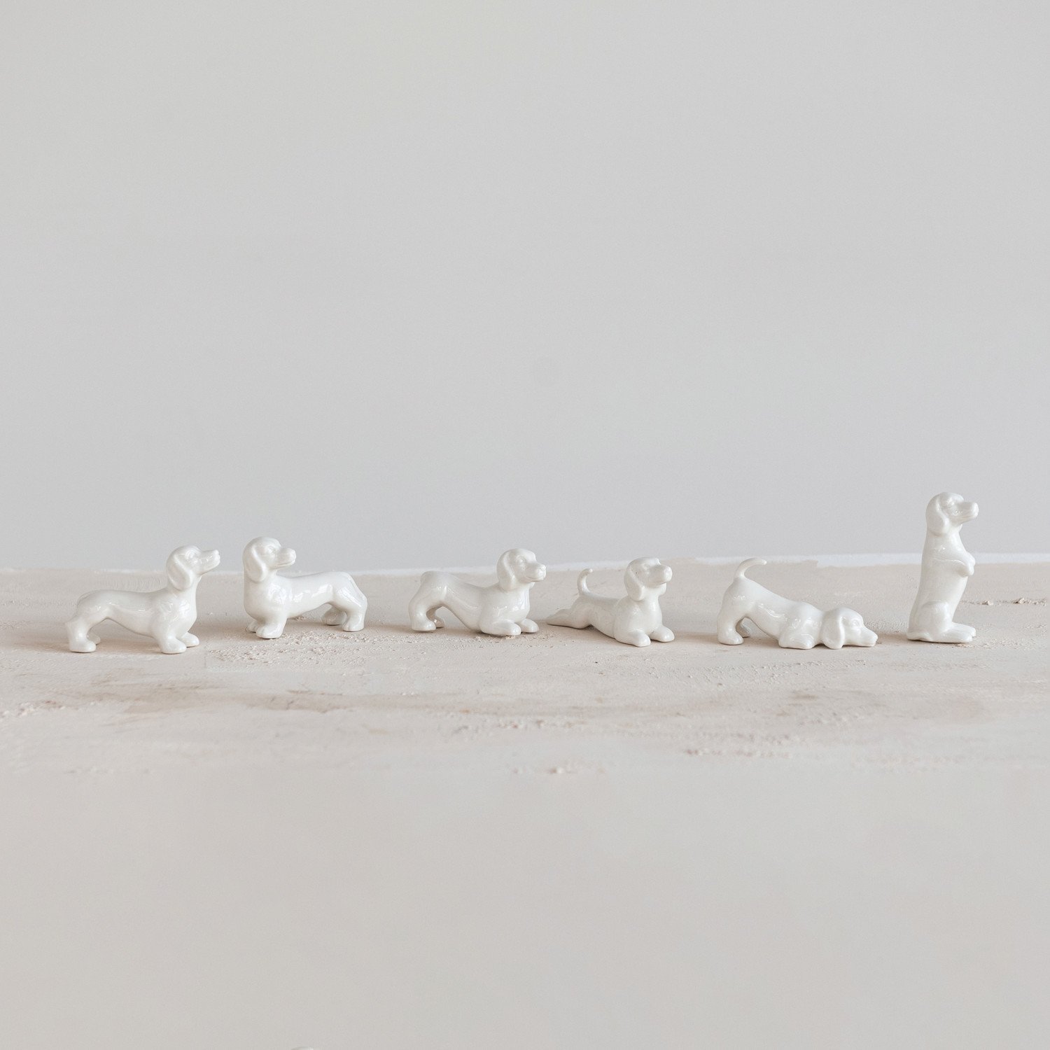 Catalog Name: 1-3/4"L - 3-1/2"L Stoneware Dogs, White, Boxed Set of 6