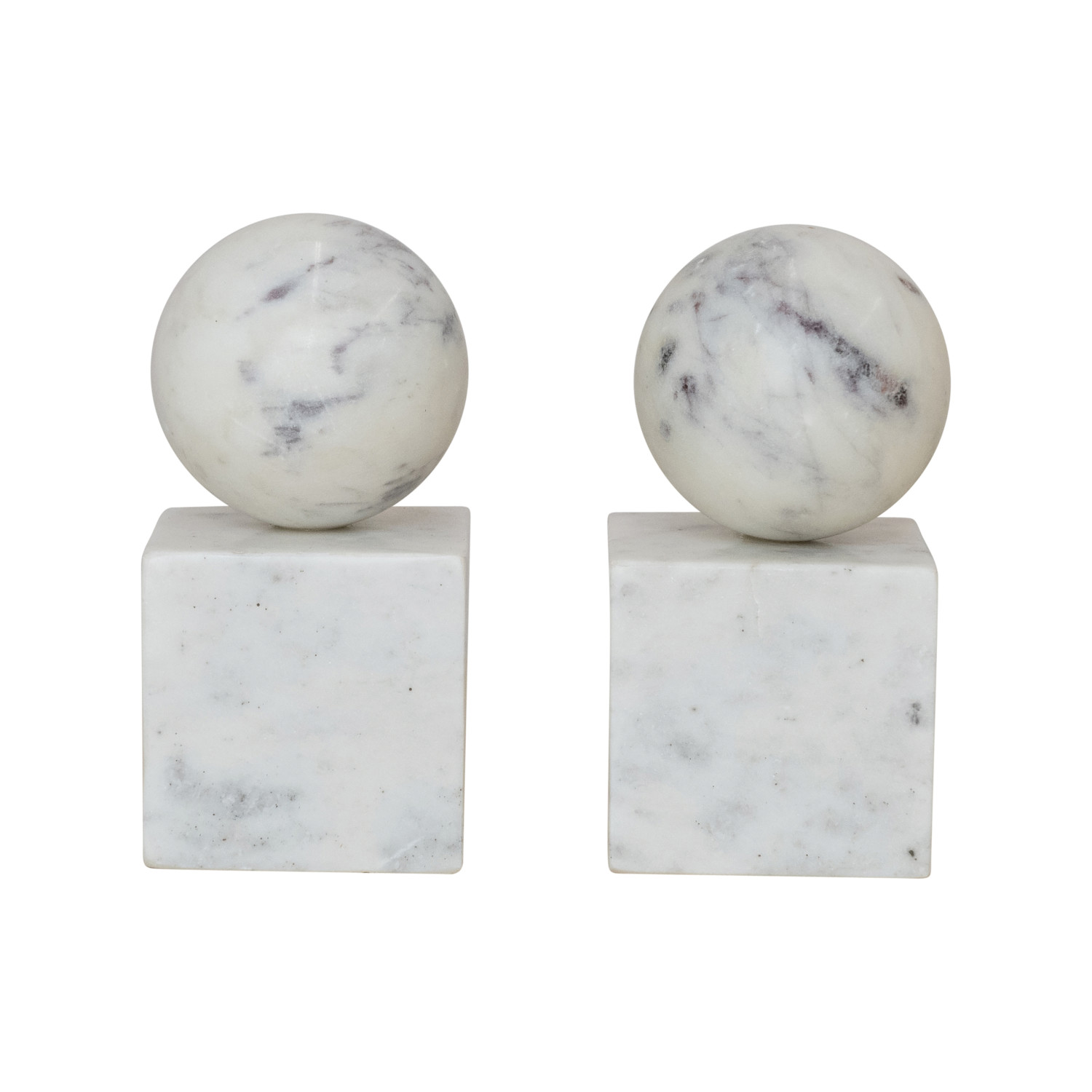 Catalog Name: 3" Square x 6"H Marble Geometric Bookends, White, Set of 2