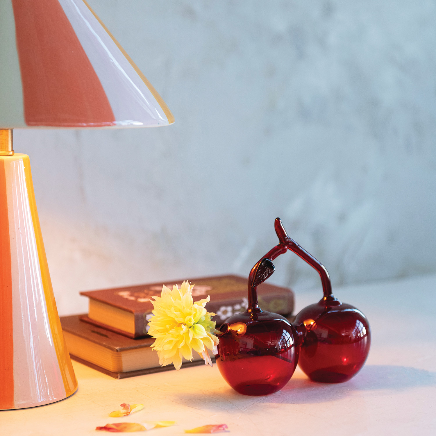 Hand-Blown Glass Cherries Shaped Vase, Red