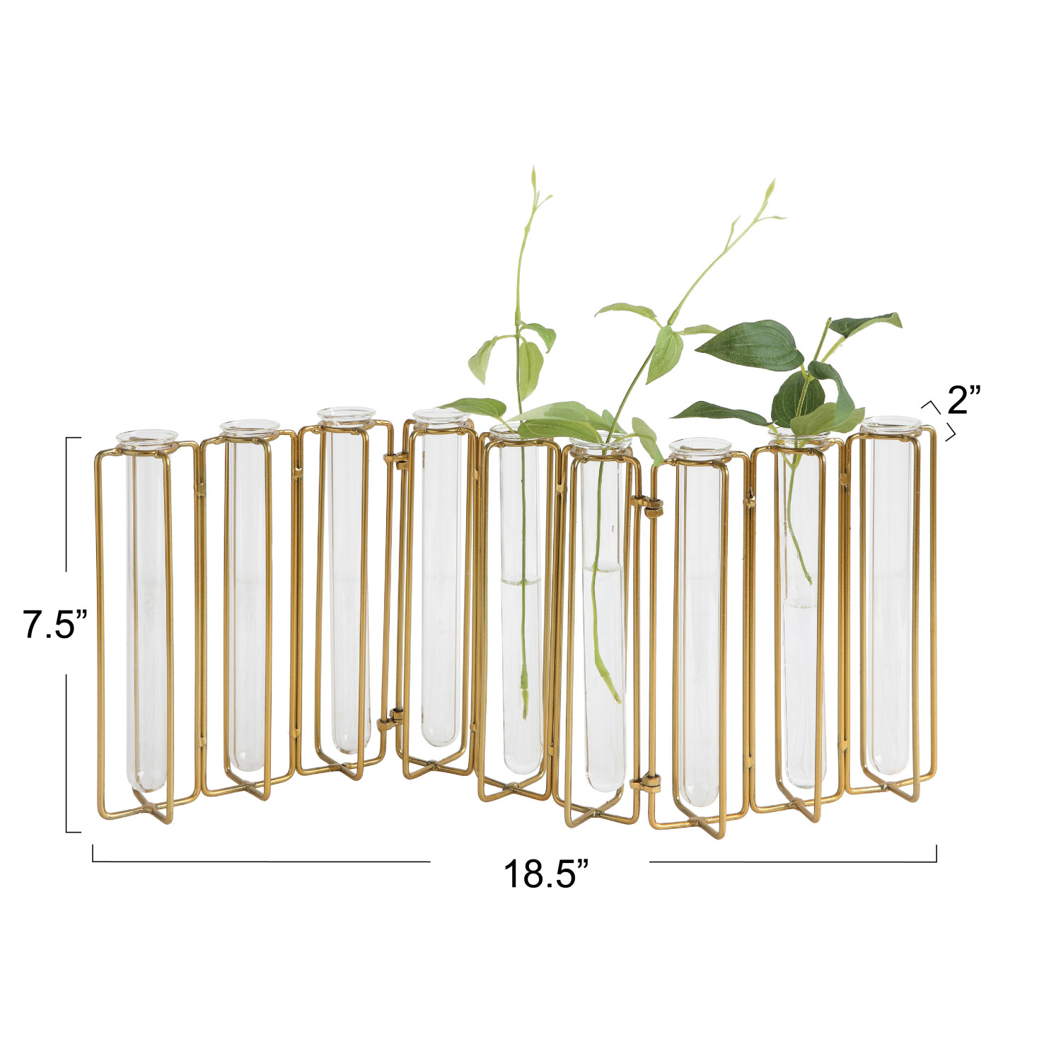 Catalog Name: 18-1/2"L x 7-1/2"H Metal & Glass Jointed Vases w/ 9 Test Tubes, Gold Finish