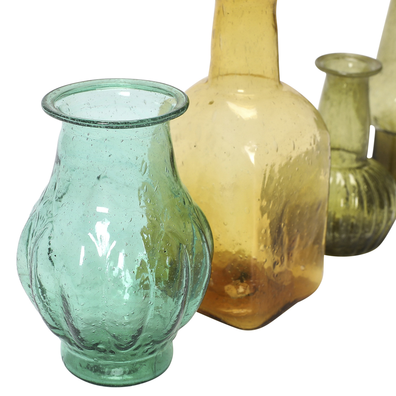 Hand-Blown Glass Vases, 4 Styles, Set of 4 (Each One Will Vary)