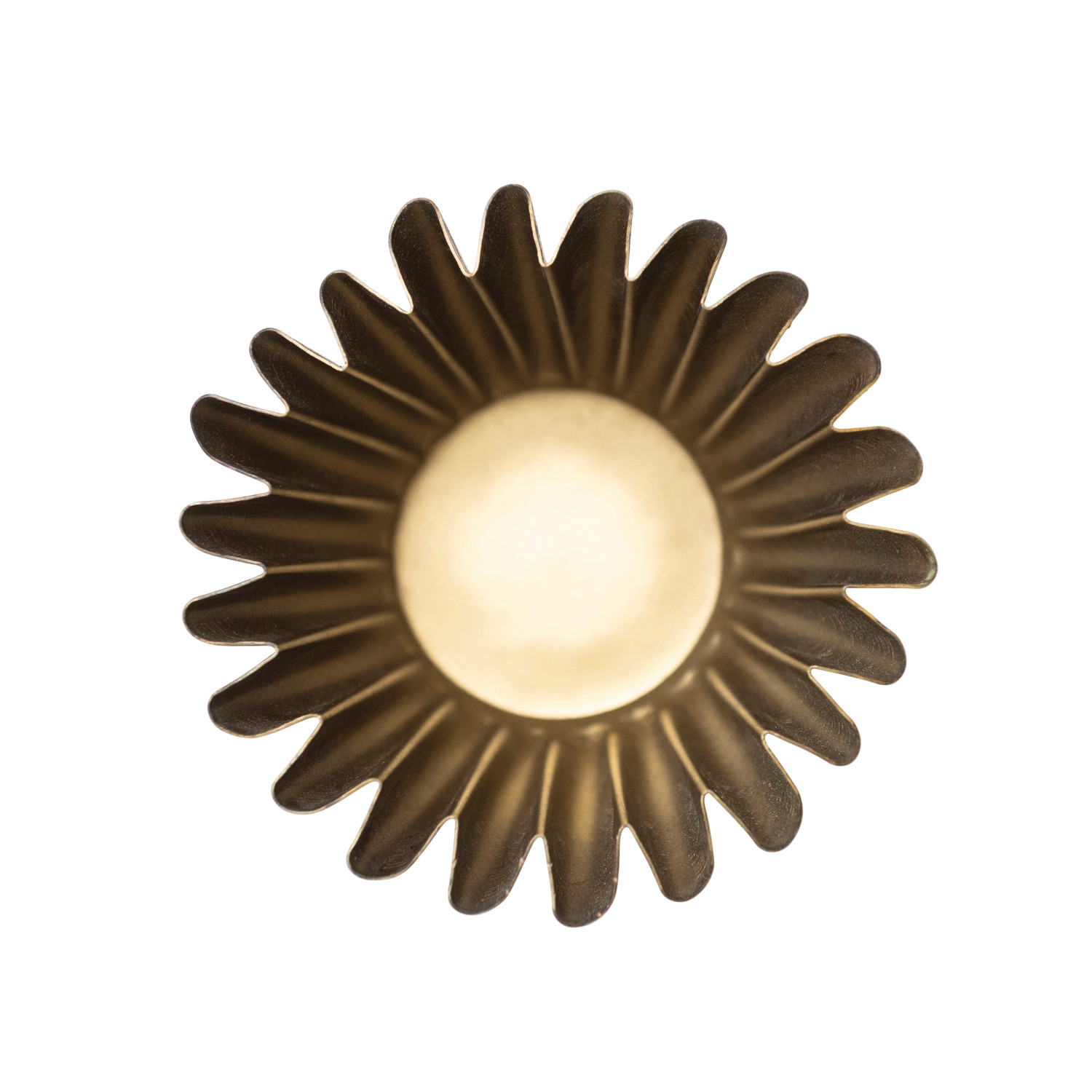 This brass fluted metal planter is a dramatic and striking way to display plants. The planter features a fluted metal surface with a brass finish and a distressed look that adds some glamour and texture to any space. The planter has a pleated silhouette that creates a stunning and unique shape. The planter does not have any drainage holes, so it is suitable for artificial plants or succulents that do not require much water. The planter is made of sturdy and high-quality metal with a brass finish that gives it a warm and shiny appearance. The vase measures 8 inches in diameter, and 6.75 inches tall and can hold a 6-inch pot. This planter is suitable for adding some glamour and texture to any vintage, industrial, or eclectic style décor. A dramatic and striking planter that features a fluted metal surface with a brass finish and a distressed look. Suitable for adding some glamour and texture to the vintage, industrial, or eclectic style décor. The planter does not have any drainage holes, so it is suitable for artificial plants or succulents that do not require much water. Made of metal.