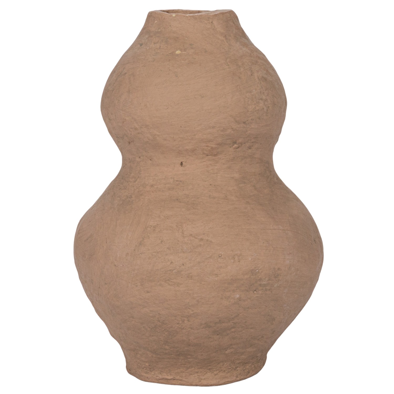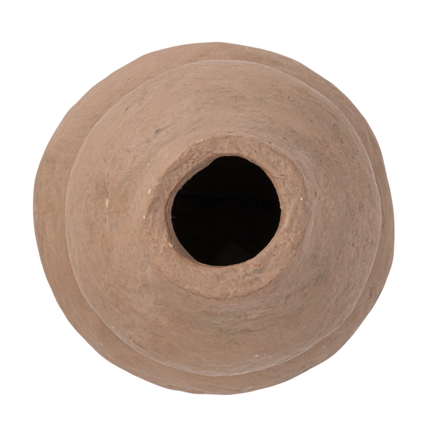 This large handmade paper mâché vase features a dusty rose color and smooth design, making it a beautiful and delicate home accessory. Made from paper pulp and glue, it has a round shape and narrow opening, and a soft, elegant look. It can be used as a decorative accent or to hold flowers, plants, or branches. Place it in any room of the house, from the living room to the bedroom, and create a cozy and romantic atmosphere. This vase is suitable for farmhouse, French country, boho, global, or modern styles, adding softness and romance to any space. It is a wonderful gift for anyone who loves art and beauty, and each vase will vary slightly in color and pattern due to the handmade process.