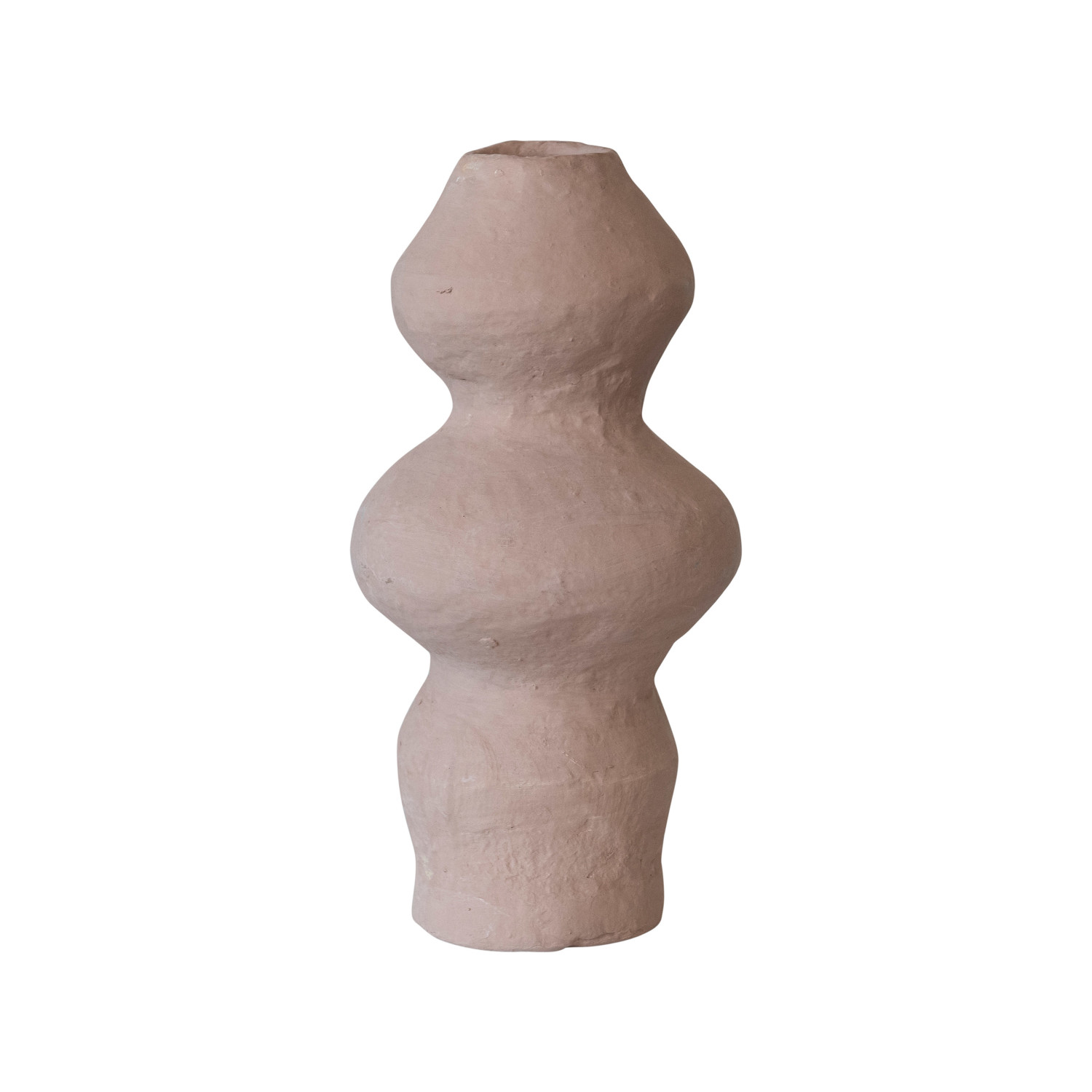 This handmade paper mâché vase features a dusty rose color and smooth design, making it a beautiful and delicate home accessory. Made from paper pulp and glue, it has a round shape and narrow opening, and a soft, elegant look. It can be used as a decorative accent or to hold flowers, plants, or branches. Place it in any room of the house, from the living room to the bedroom, and create a cozy and romantic atmosphere. This vase is suitable for farmhouse, French country, boho, global, or modern styles, adding softness and romance to any space. It is a wonderful gift for anyone who loves art and beauty, and each vase will vary slightly in color and pattern due to the handmade process.