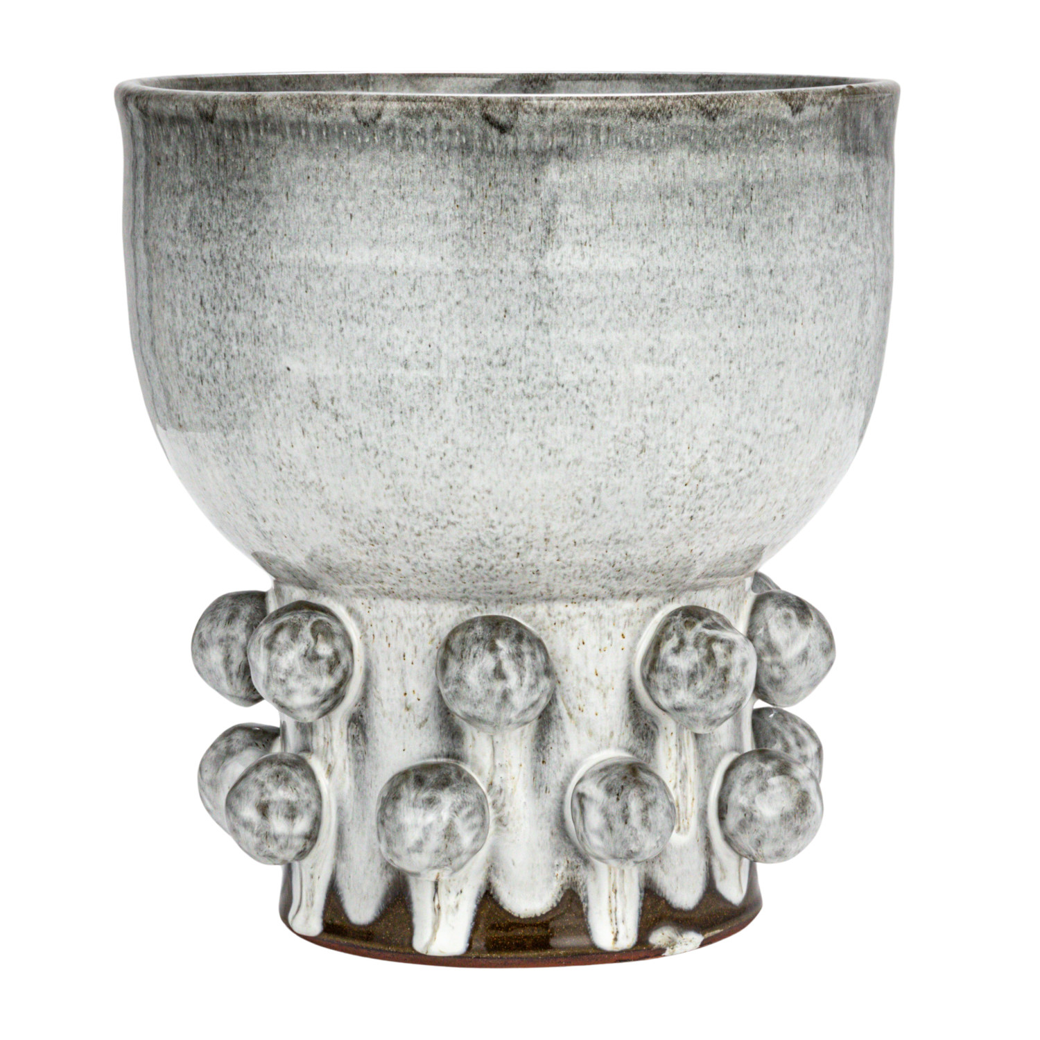 Catalog Name: 11" Round x 12-1/4"H Terra-cotta Hobnail Footed Vase, Reactive Glaze, White (Each One Will Vary)