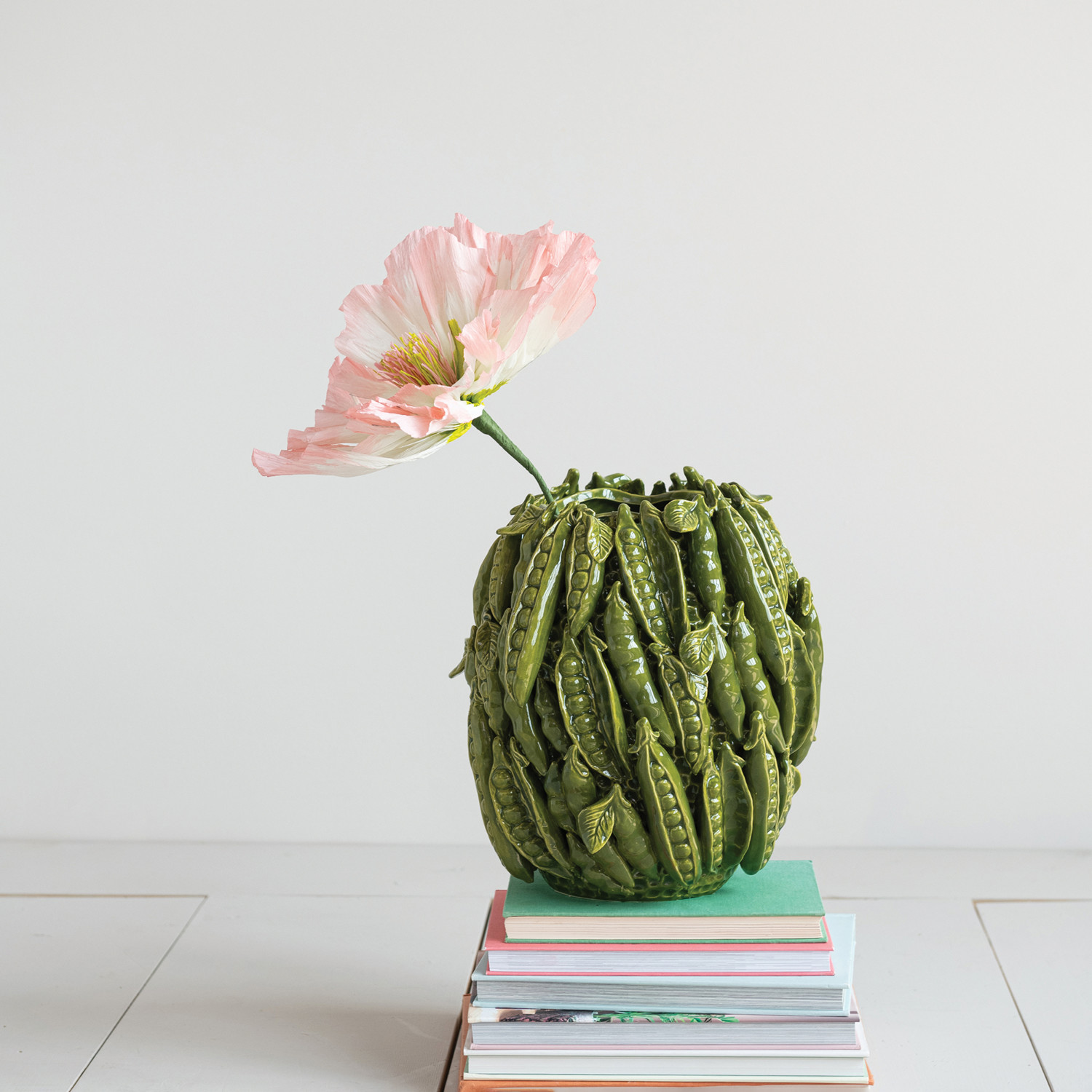 Catalog Name: 12-1/4" Round x 12-3/4"H Handmade Stoneware Vase w/ 3D Peas, Reactive Glaze, Green, Truck Ship (Each One Will Vary)